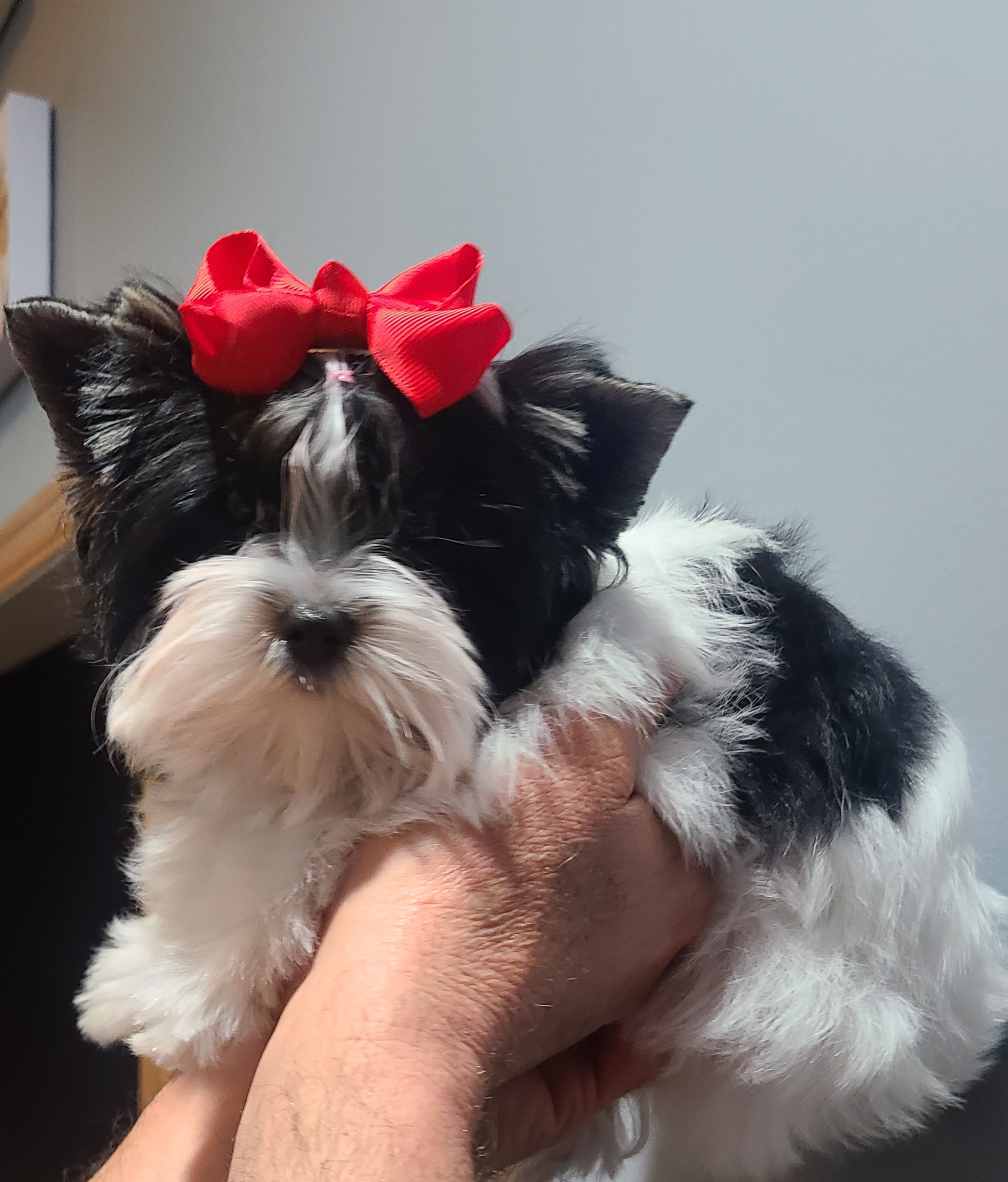 We pride ourselves in breeding quality AKC Yorkshire Terriers. We specialize in the Parti coat color, but we sometimes have traditional colors as well. Located in Oak Grove, Missouri we are close to the Kansas City airport. That makes transporting puppies simple. We take care, and each of our puppies goes to a loving home. Also, as as a groomer for the past 36 years. Your puppy will be well introduced to grooming,baths ,blow drying .toe nail triming,and the drimmel. I feel this is such a necessary part of a yorkie's life, And it's best to learn. It's part of life and love it rather than fight it. And if they grow up having it done they have no problem. And your groomer will love you for it. Our puppies have been vaccinated, dewormed, health clearance from our vet.