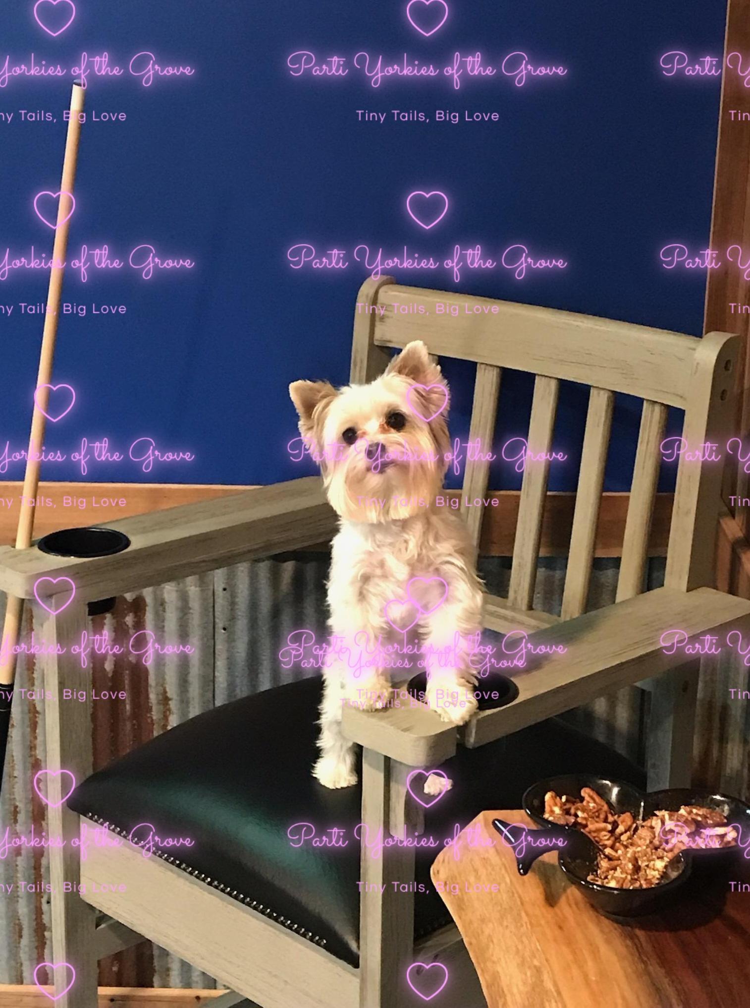 I'm Cheryl S., the breeder behind Parti Yorkies of the Grove located in Oak Grove, MO. We are a husband/wife team, we both spend time with the babies. We also have the grandchildren over so they get kiddo time. We are an animal-loving family. John has raised show pigeons since he was just a young boy and continues to raise them today. Cheryl worked as a veterinary assistant. Then she became a dog groomer over 35 years ago and has had her own grooming shop for 18. now retired, they wanted a family pet that was smaller yet had a fun personality. Our animals are family pets, but quality is of utmost importance to us. We are dedicated to making sure our Yorkies meet AKC standards.