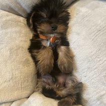 Tera was great to work with from start to end, provided many updates on my little Cash, and answered any questions that would pop up into my head. She was very accomodating through the whole process including pick up. I was very impressed with how Cash adjusted to his new home and it is due to how Tera cared for him in his early weeks. Cash almost has “Sit” down, is great with potty training, and is sleeping through the night at 11 weeks! We could not recommend Tera and Partins Yorkies enough!