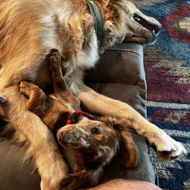 Laken was just awesome all around. You can tell she really cares for the pups through the mannerisms and personality of the dogs. Axel Monroe has been everything we hoped for and more. He has settled right in with the family, and made our Golden his best friend. We did change his name from just Monroe, to Axel Monroe as it was easier for the kids to just say Axel. He’s such a sweetheart, and we couldn’t have hoped for a better experience.
