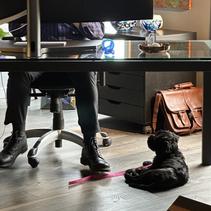 Rikke is a female Portuguese Water Dog. Carefully selected as a great representative of her breed, David decided to make her part of their program. David has passed Good Dog’s screening process, which involved a review of their breeding practices, environment, and the mental and physical health of their dogs.