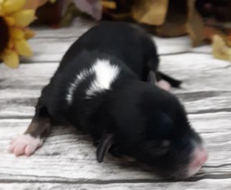 “All our puppies come tails docked, dew claws removed, regularly dewormed, utd on shots, health record, 1 gr genetic guarantee, microchipped and new puppy pack. Pet price and breeding rights vary. Deposits are also transferrable to future litters.”