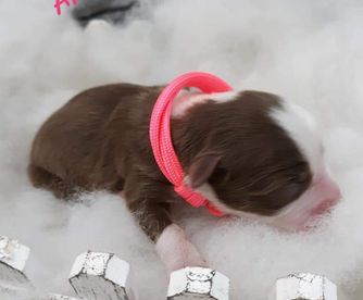 Sassy is a female Toy Australian Shepherd. Carefully selected as a great representative of her breed, Christina decided to make her part of their program. Christina has passed Good Dog’s screening process, which involved a review of their breeding practices, environment, and the mental and physical health of their dogs.