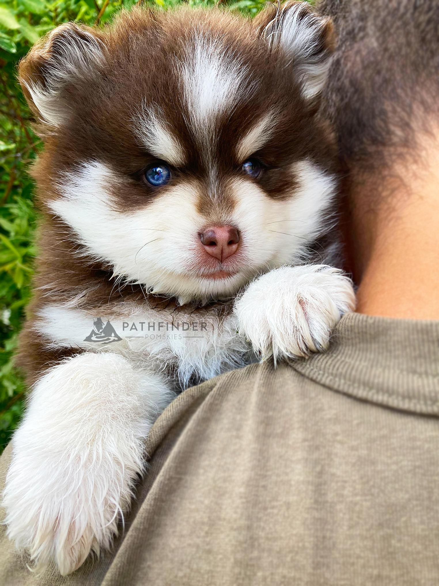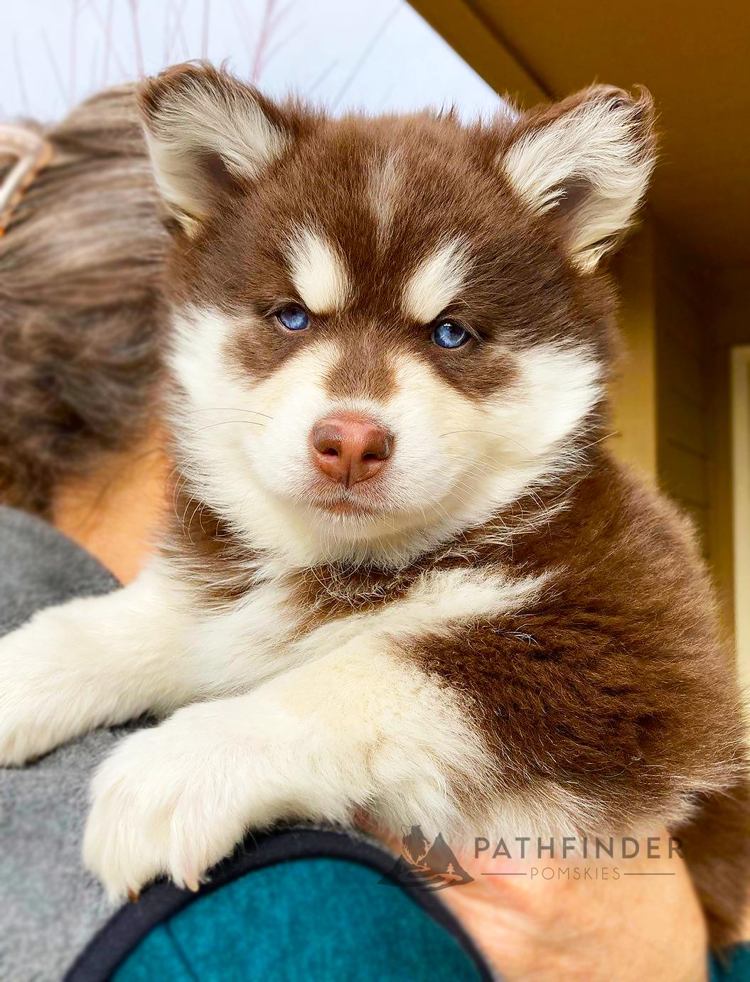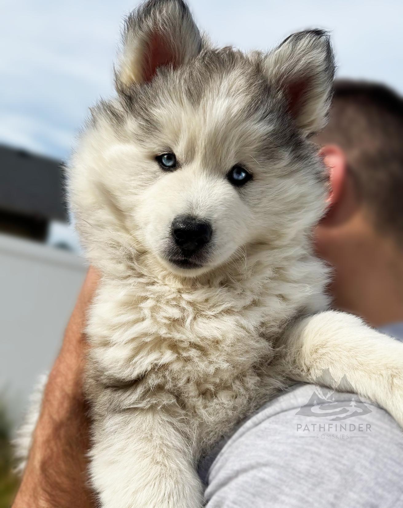 I'm Ariel C., the breeder behind Pathfinder Pomskies located in Airway Heights, WA. We breed with passion and integrity so we’re able to responsibly contribute to growing this amazing breed. Our program is focused on producing puppies that are healthy, well-structured, and have outstanding temperaments. We have high expectations for our puppies and strive to place each one in an enriching and loving home!