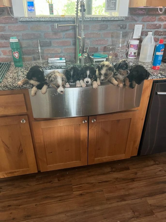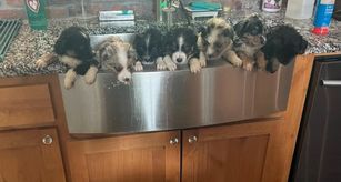 Our puppies include blue merle, red, and black. Colors will vary depending on the parent dogs.