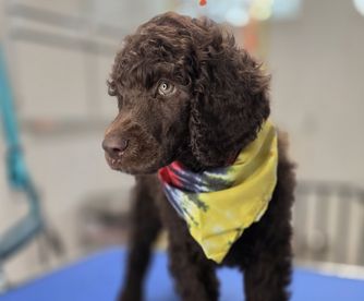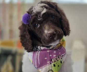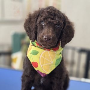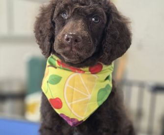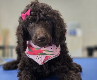 Our Goldendoodle puppies include apricot, black, and parti. Poodle puppies include brown, cafe au lait, cream, and parti. Colors will vary depending on the parent dogs.