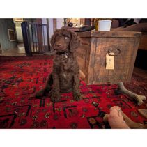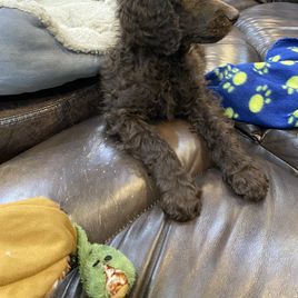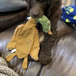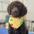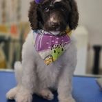 Brilliant! I located Flounder [aka Milo] on the website and contacted Sylvia pretty much to find out what might happen next when it comes to purchasing a pup on the net. Sylvia's response was prompt and she was very willing to take all the time in the world to talk with me about the litter in general and Flounder in particular. During our first conversation, I could tell she is extremely honest but, more importantly invests her own love, care and attention to detail in her breeding program. I decided to take the leap! Sylvia delivered Flounder 2 days ago. After meeting Flounder, it took me just hours to realize exactly how much care and love Sylvia invests in her puppies! Flounder made eye contact with me immediately and the bonding started right away! The transition was seamless and from one loving puppy mom to the next. Flounder came to me confident, healthy, happy and super well-adjusted. Sylvia attended to each and every detail right down to a sleep blanket scented by the litter and a large stuffed toy to sleep with on his first day away from "home." I'm an experienced dog owner who rates Sylvia as top of the line and five-star!