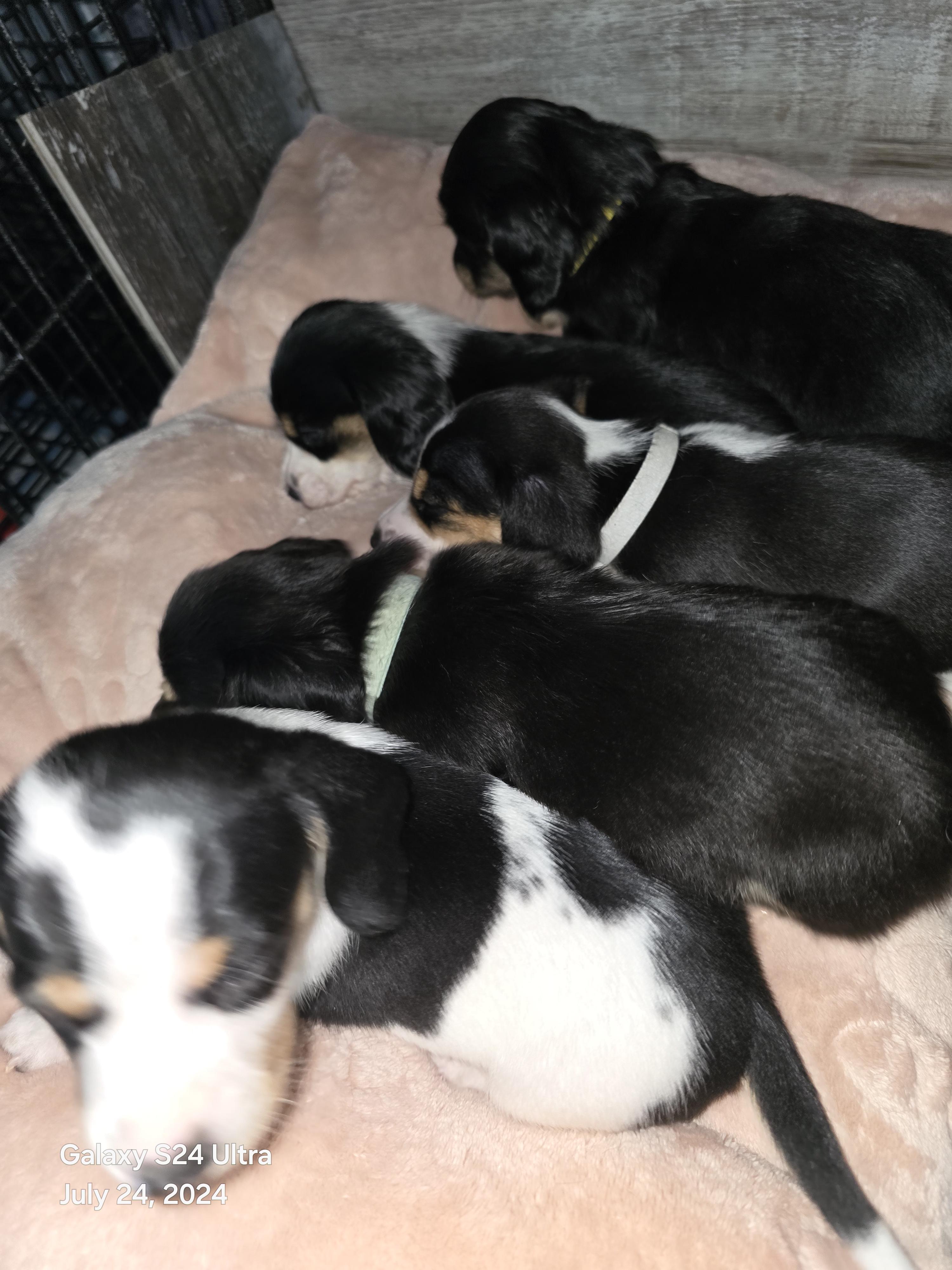 Our puppies include piebald, black and tan, and black and cream. Colors will vary depending on the parent dogs.
