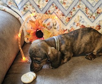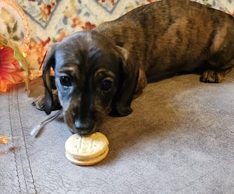 Edmon is a male Dachshund. Carefully selected as a great representative of his breed, Patricia decided to make him part of their program. Patricia has passed Good Dog’s screening process, which involved a review of their breeding practices, environment, and the mental and physical health of their dogs.