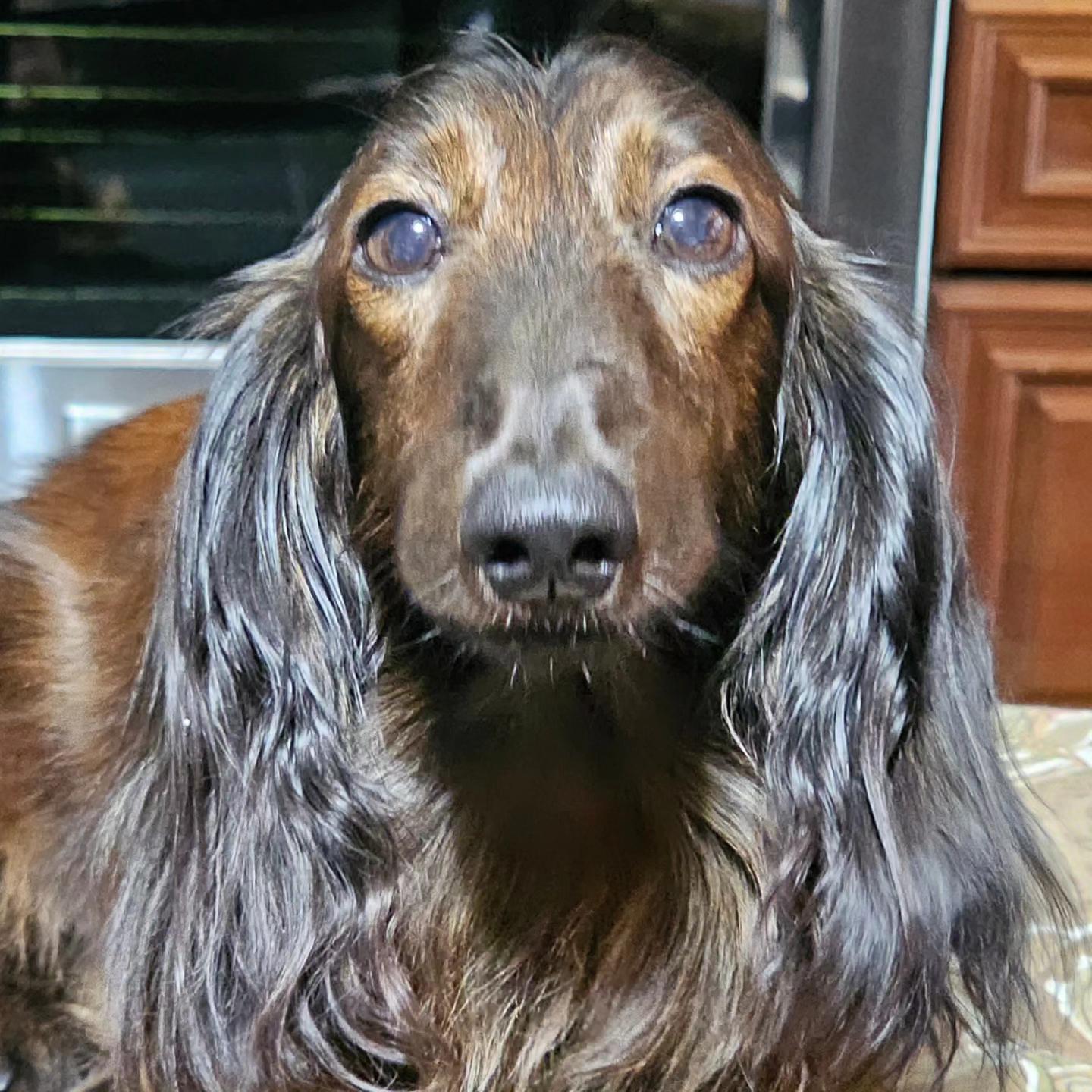 Sadie is a female Dachshund. Carefully selected as a great representative of her breed, Patricia decided to make her part of their program. Patricia has passed Good Dog’s screening process, which involved a review of their breeding practices, environment, and the mental and physical health of their dogs.