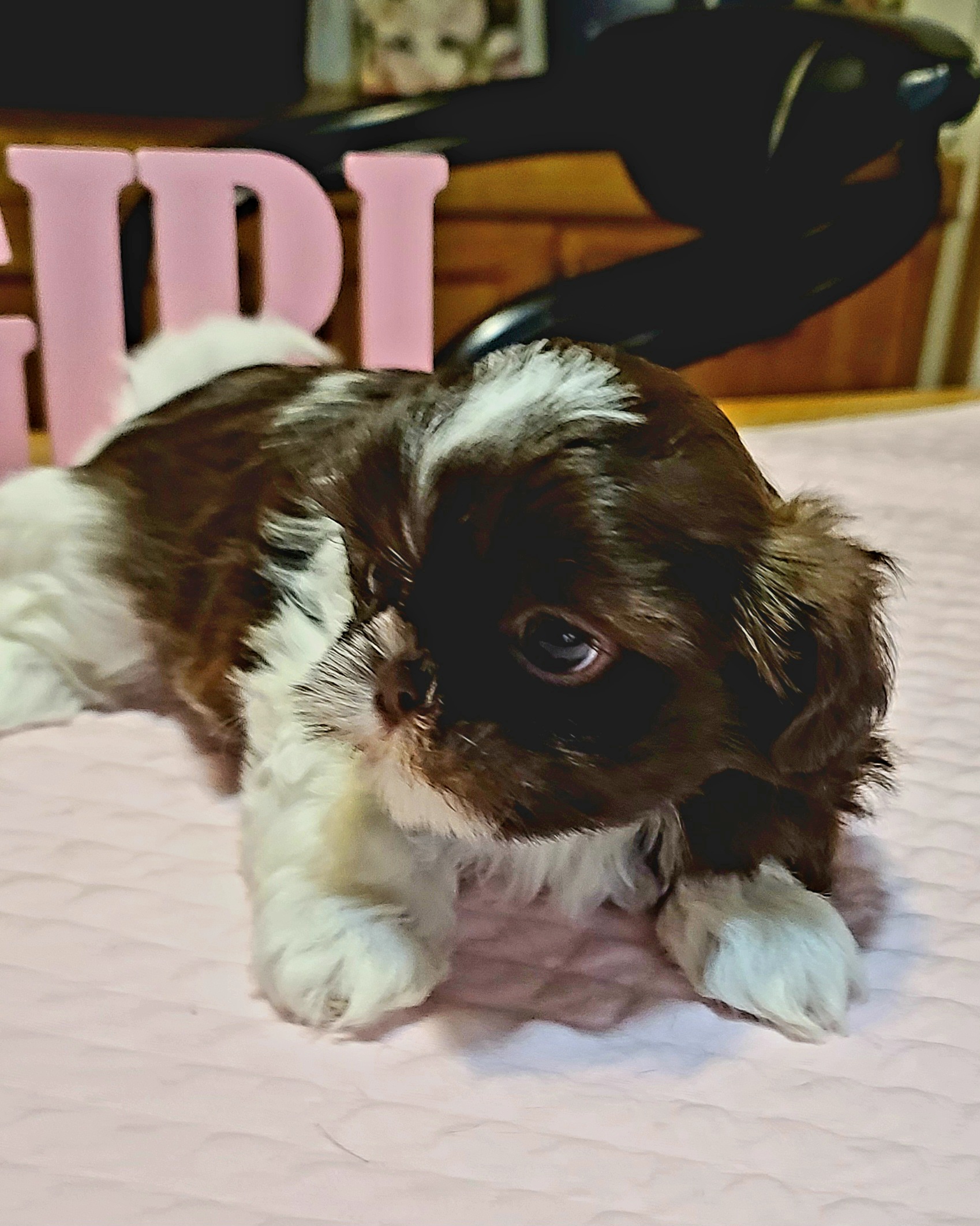 We just got our new puppy and we are overjoyed. We can tell how well taken care of and loved he was. Pat was so nice to work with and more than willing to answer all our questions. She is very knowledgeable about the breed. Our new little guy is well on his way to being potty trained to use the puppy pad. He is very sociable and such a sweet little guy. We highly recommend Pat because of the care she has for her fur babies.