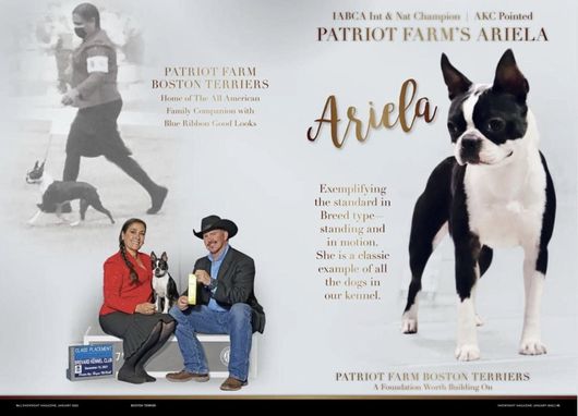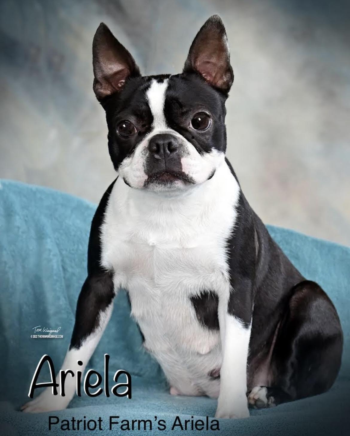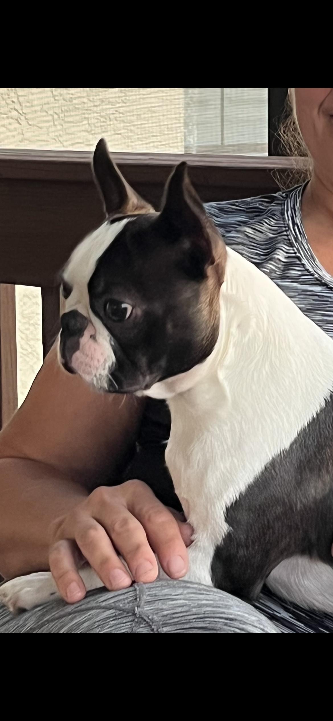 Ariela is a female Boston Terrier. Carefully selected as a great representative of her breed, Lorraine decided to make her part of their program. Lorraine has passed Good Dog’s screening process, which involved a review of their breeding practices, environment, and the mental and physical health of their dogs.