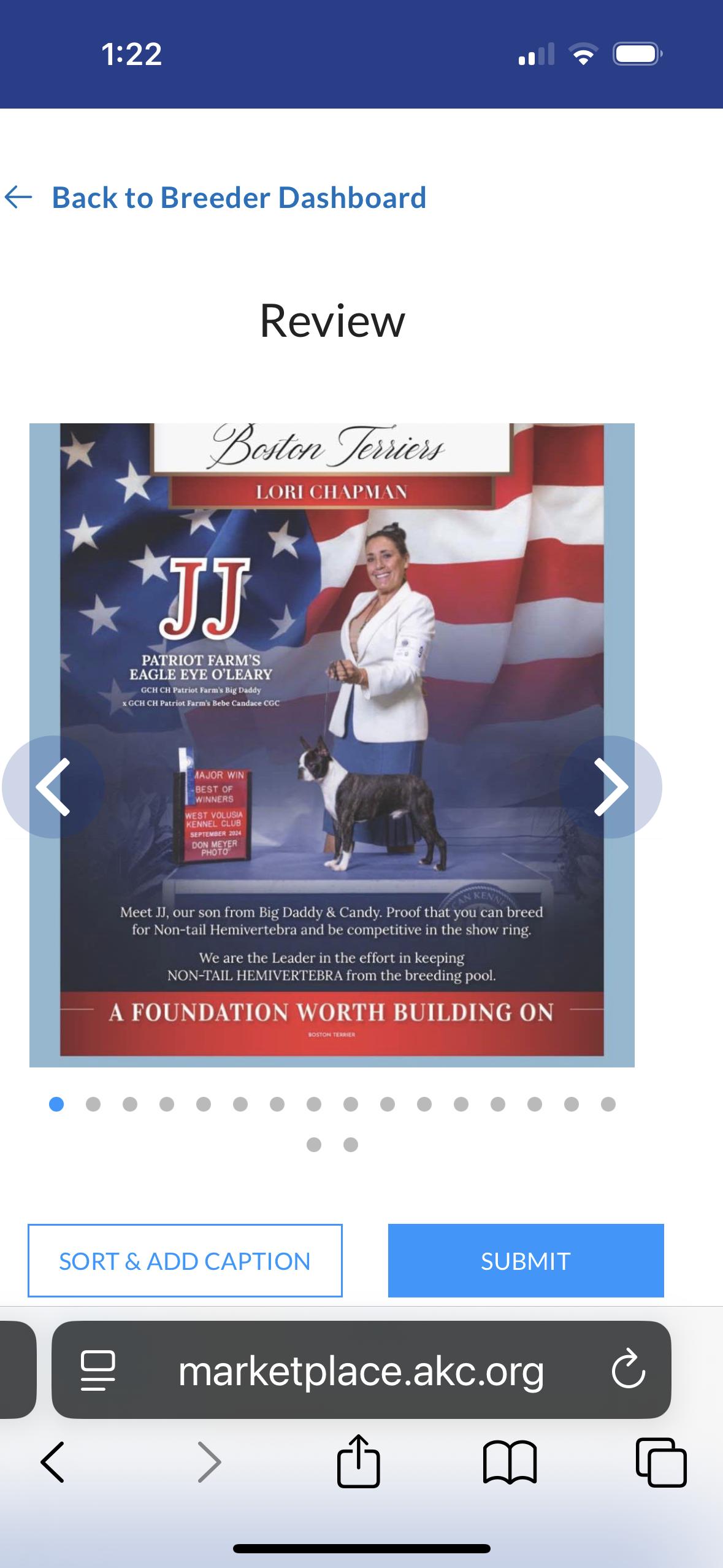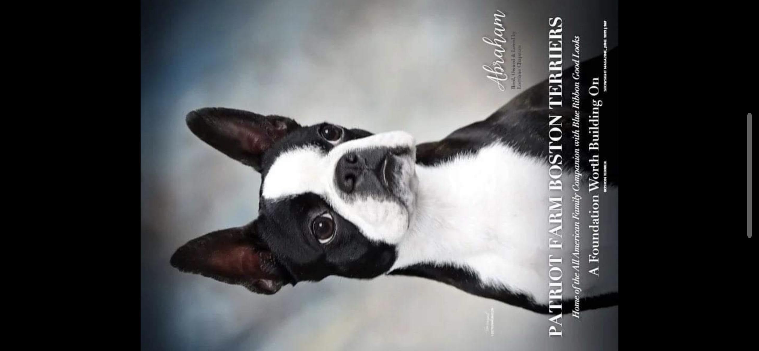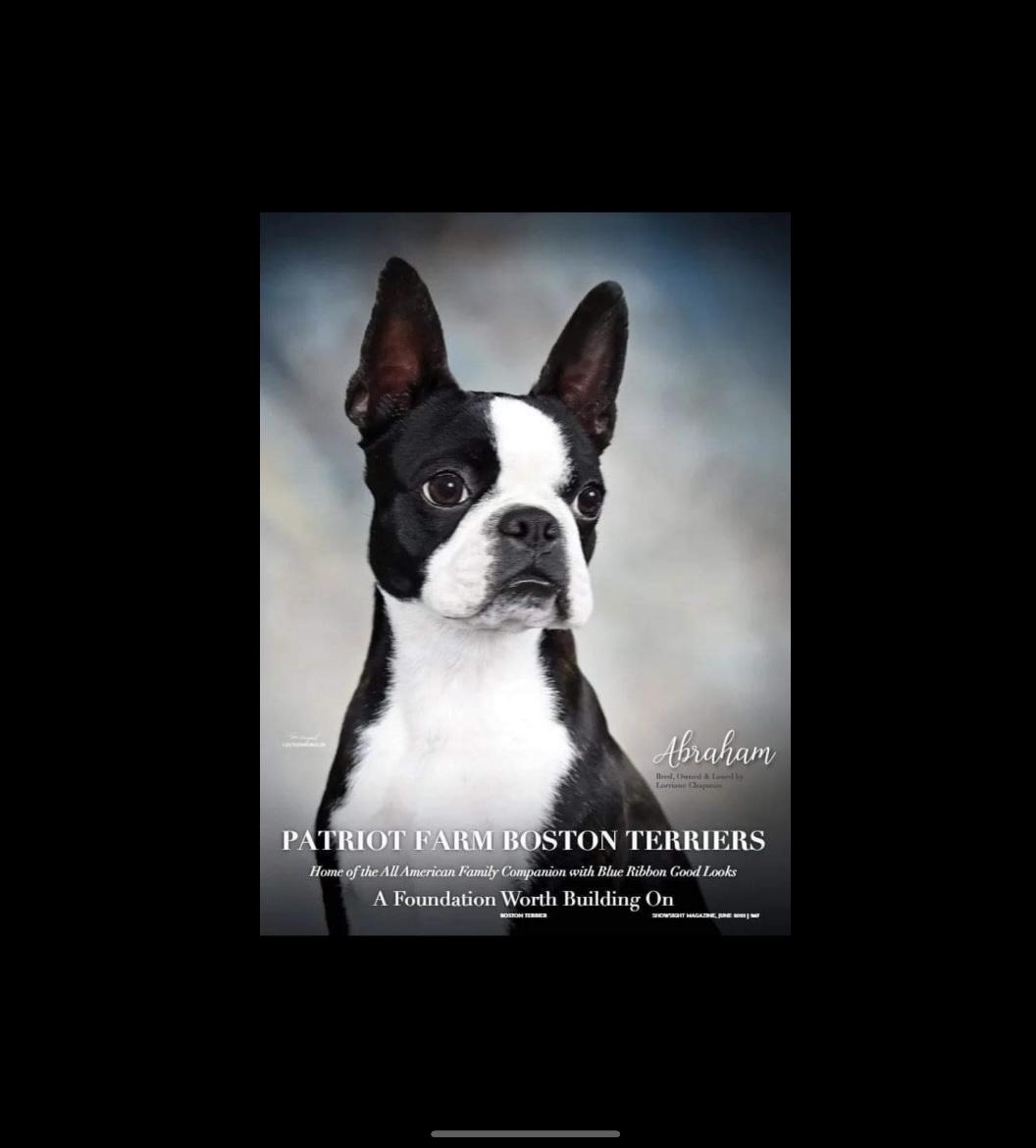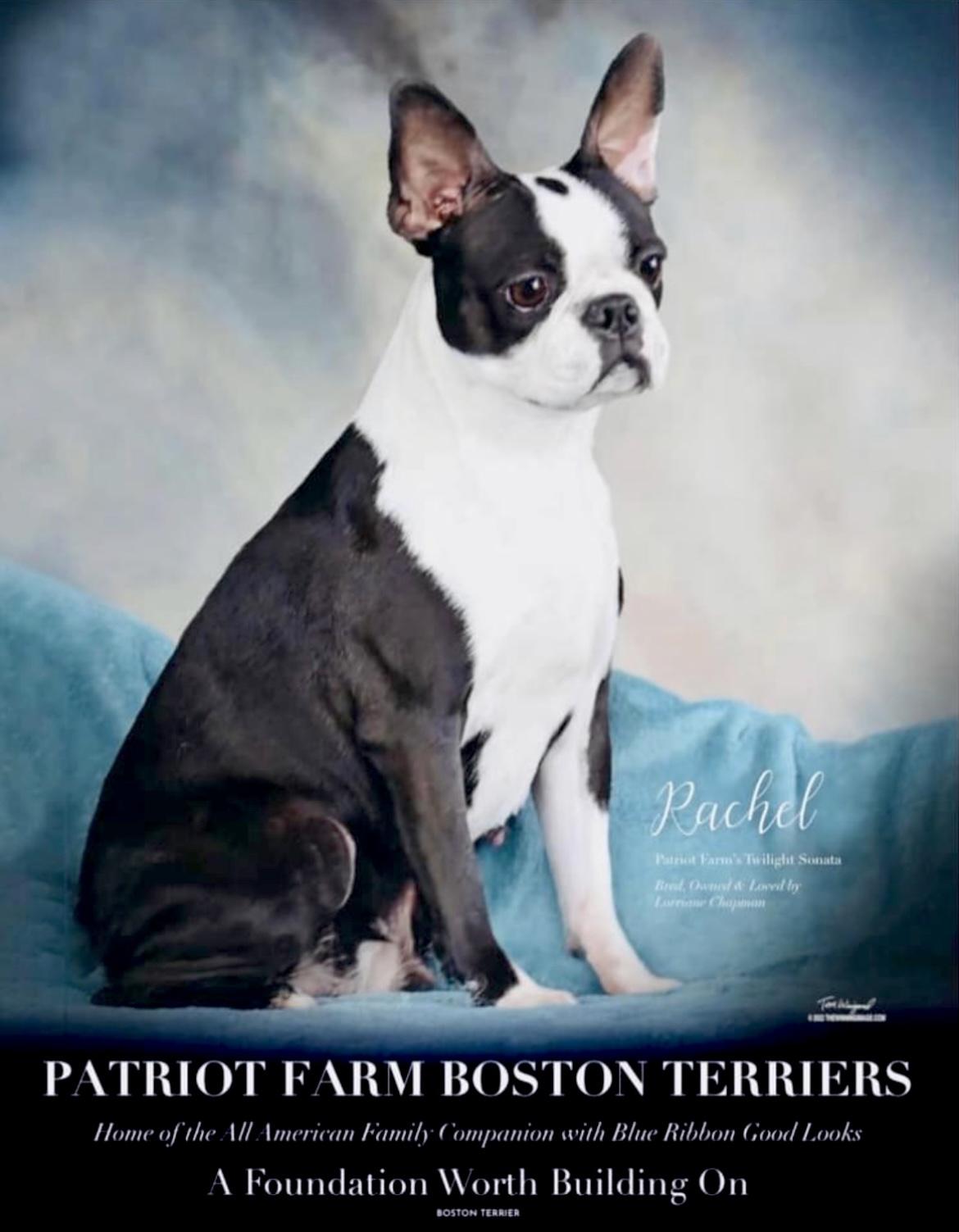I'm Lorraine C., the breeder behind Patriot Farm Boston Terriers located in Weirsdale, FL. Our health certificates are listed on the OFA. Our priority is making sure our dogs and puppies get the best care, which includes health testing on our parent dogs, all appropriate vet care, thorough socialization, and - of course - lots and lots of love!