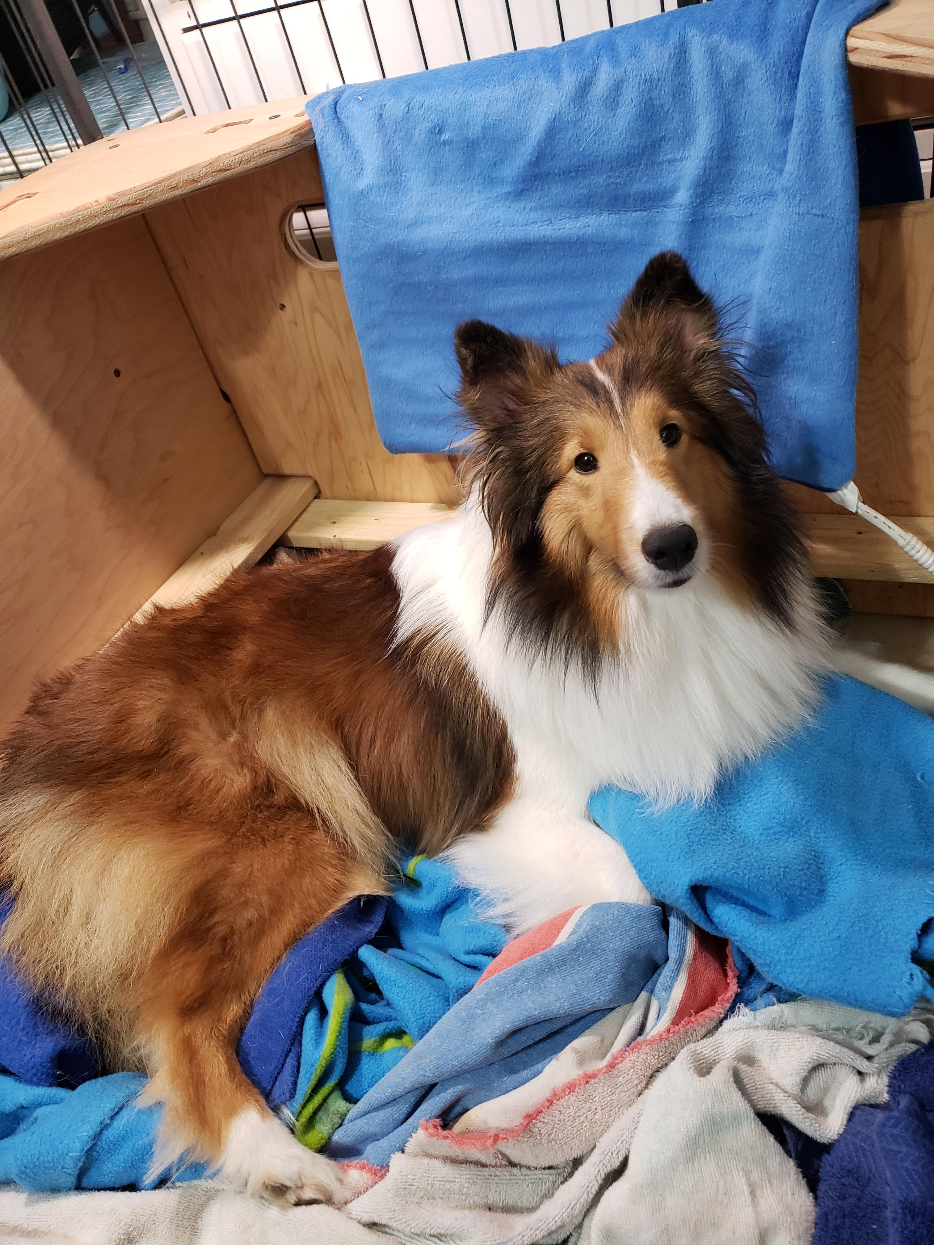 Shelly is a female Shetland Sheepdog. Carefully selected as a great representative of her breed, Jeanie decided to make her part of their program. Jeanie has passed Good Dog’s screening process, which involved a review of their breeding practices, environment, and the mental and physical health of their dogs.