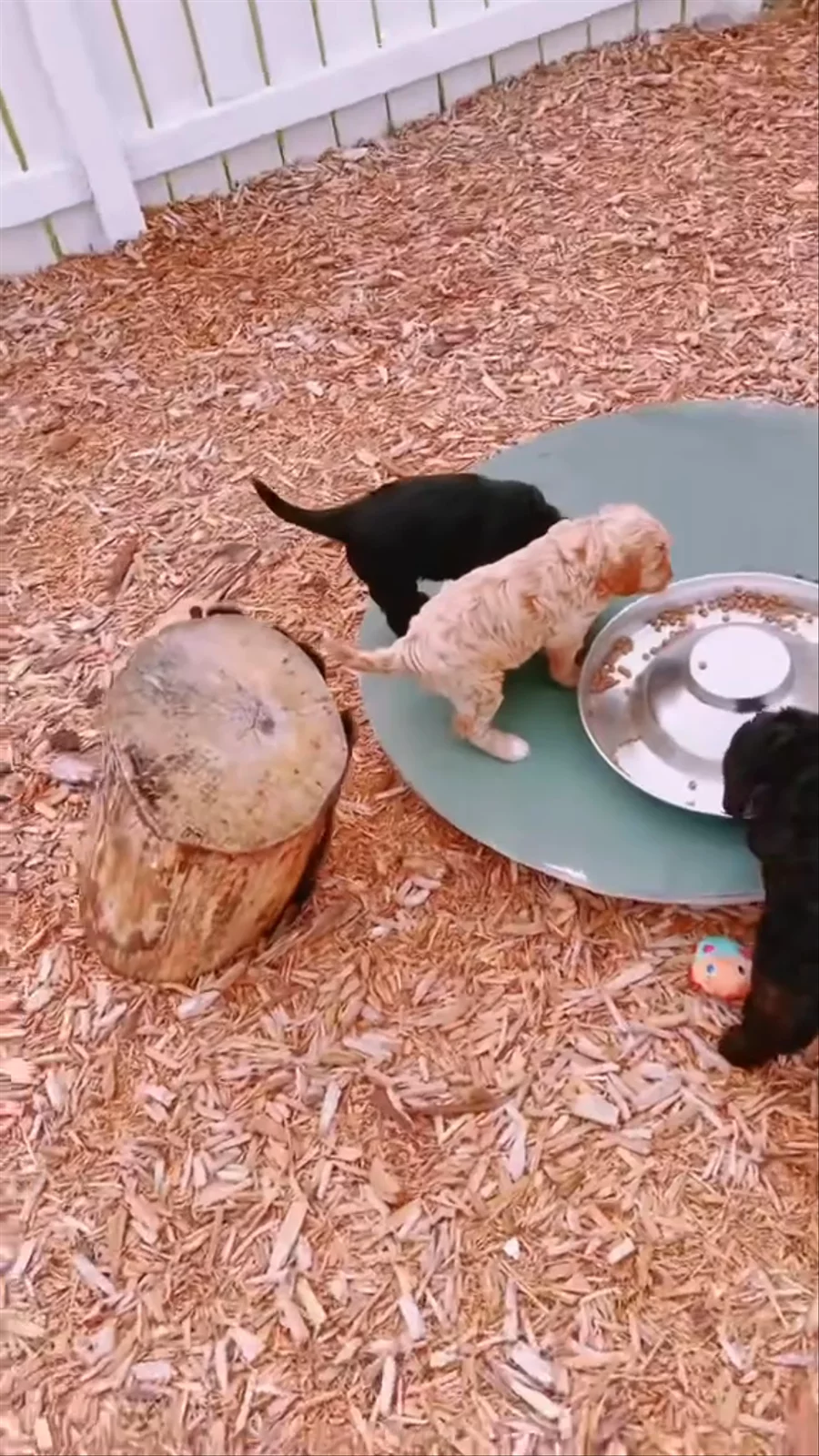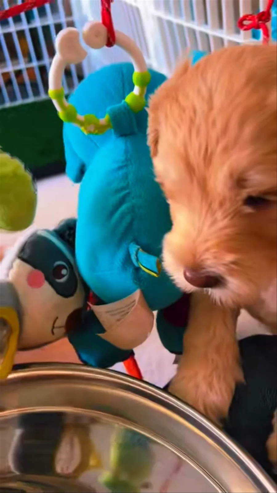 The puppies are being desensitized every day. This day was robotic and loud toys, banging pan, the blow dryer, and bubble wrap pops.j