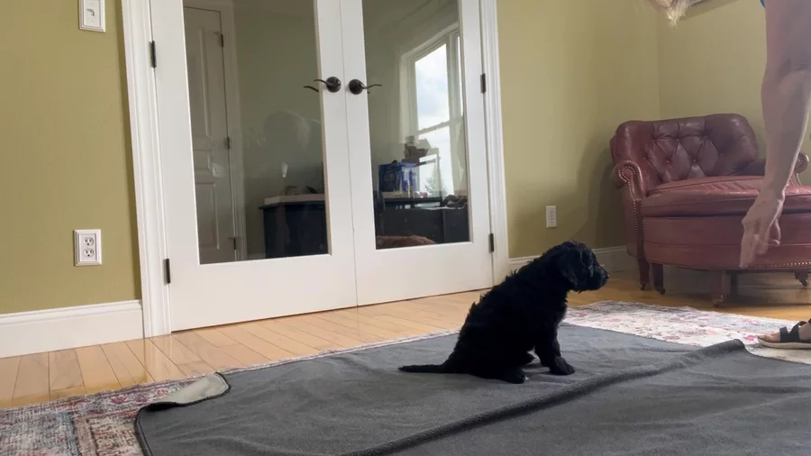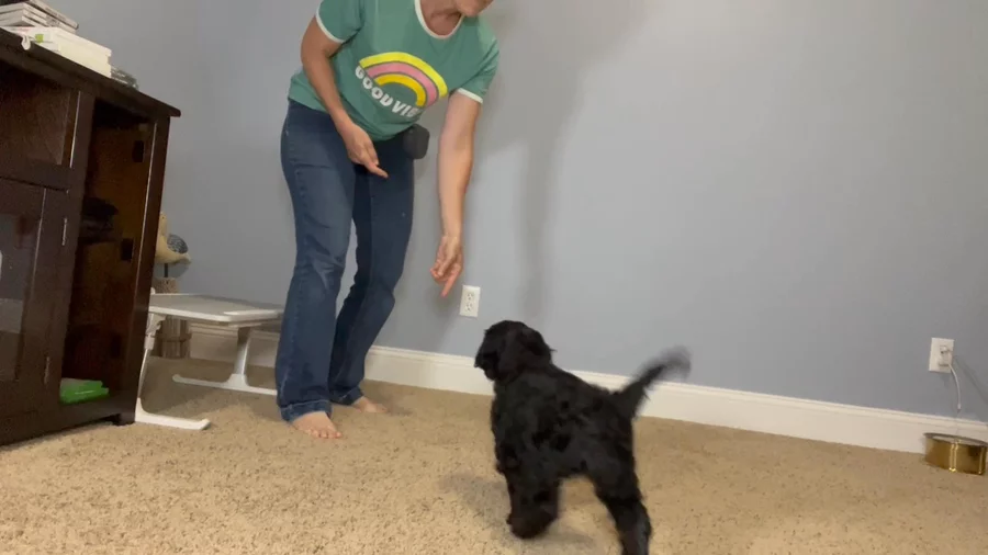 The puppies just turned 6 weeks old and are learning obedience commands…little Cocoa just started learning “Down”. You can see she is eager to please and working hard.