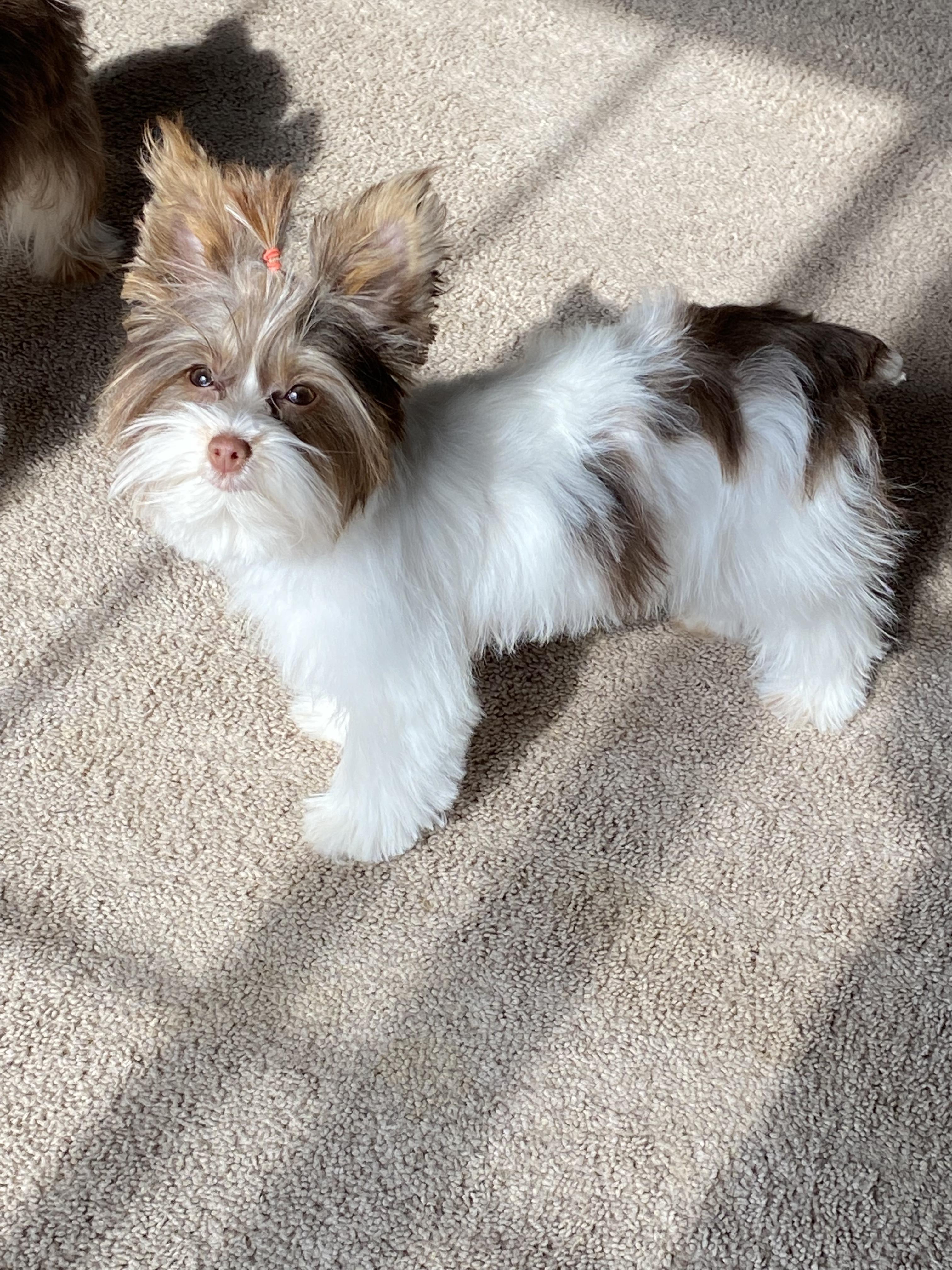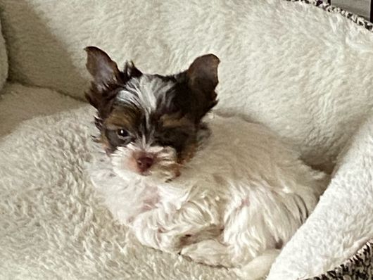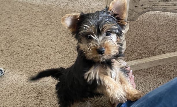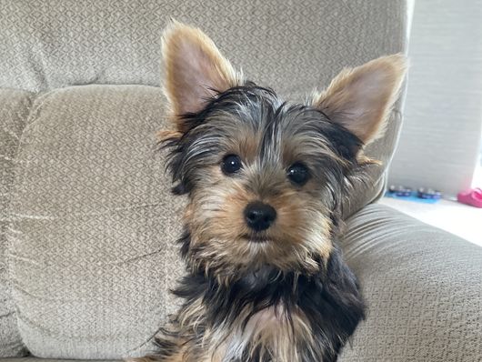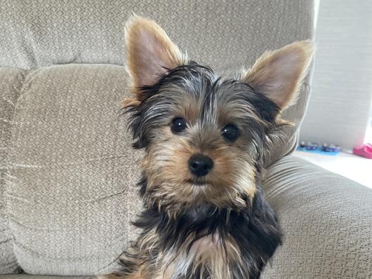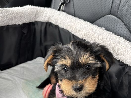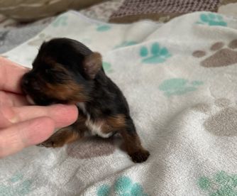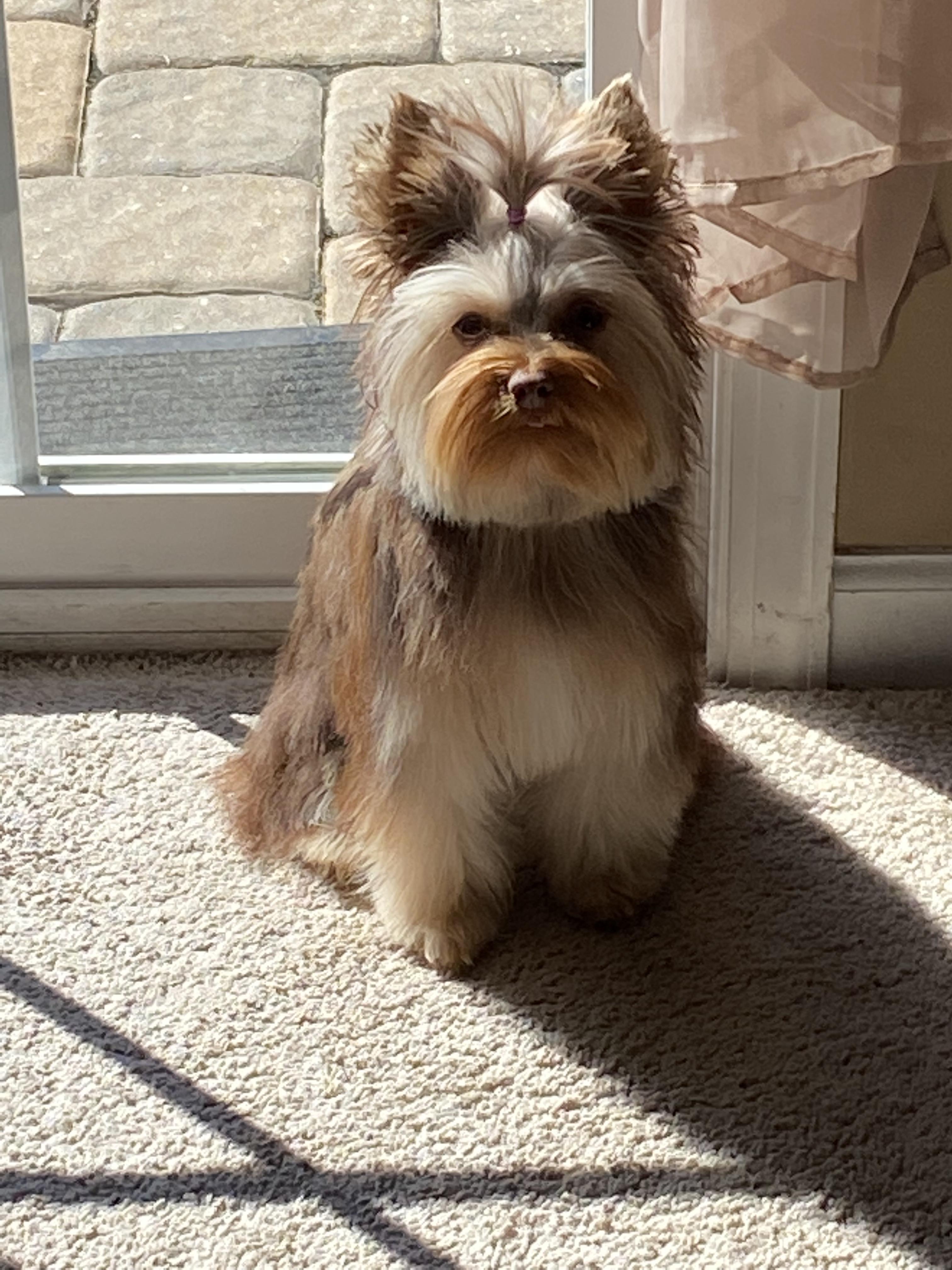 Saige is a beautiful traditional yorkie girl. Health tested and cleared she is akc and apri registered and is such a calm good baby girl.