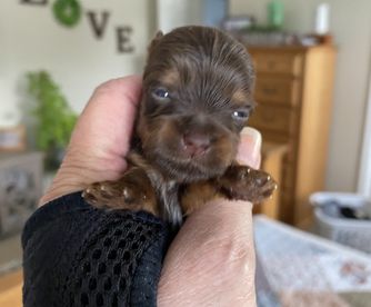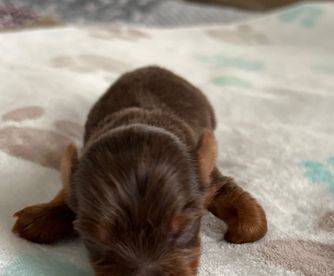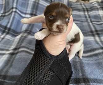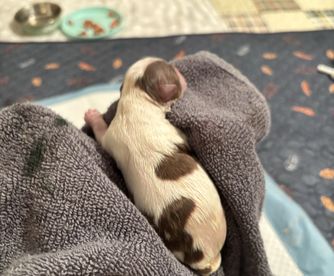 Our puppies include chocolate and tan, parti, and black and tan. Colors will vary depending on the parent dogs.
