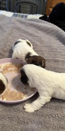 Babies will be 4 weeks old on friday the 14 th of november. They are doing amazing. Now on mush, teeth starting to come in and up on all 4’s playing with each other. Such good little girls. Faith is still available. Havent really been advertising her alot but she is available. She is an amazing baby girl. So so sweet