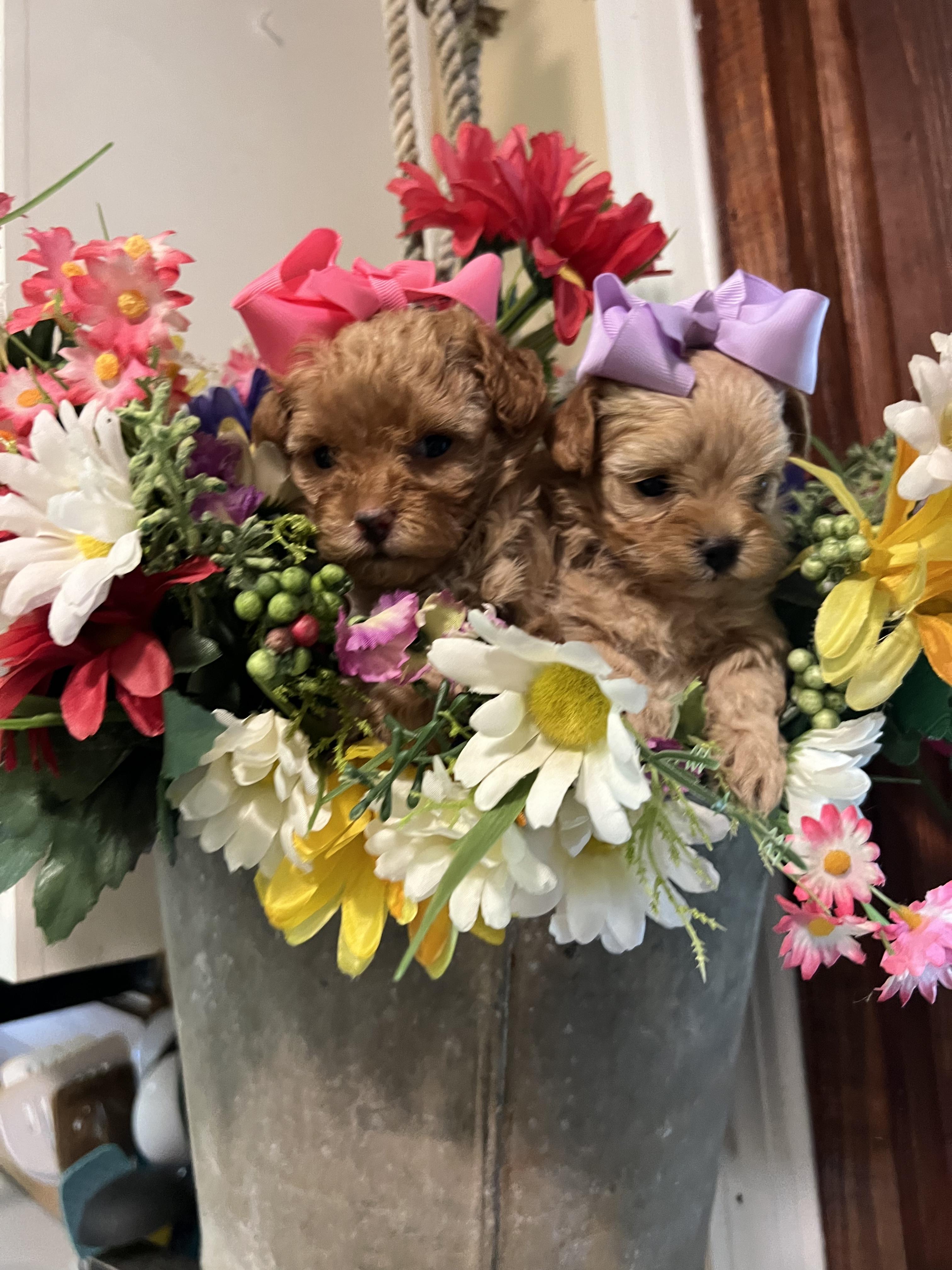 Maltipoo puppies are apricot. Colors will vary depending on the parent dogs.
