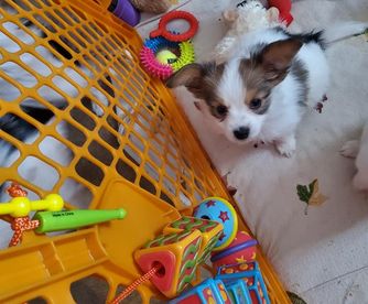 Ted E Bear (Bear for short) is my sweet Phalene. AKC registered and sweet as can be. Everyone that meets him loves him! He is Zeus Apollo's son and looks just like him!