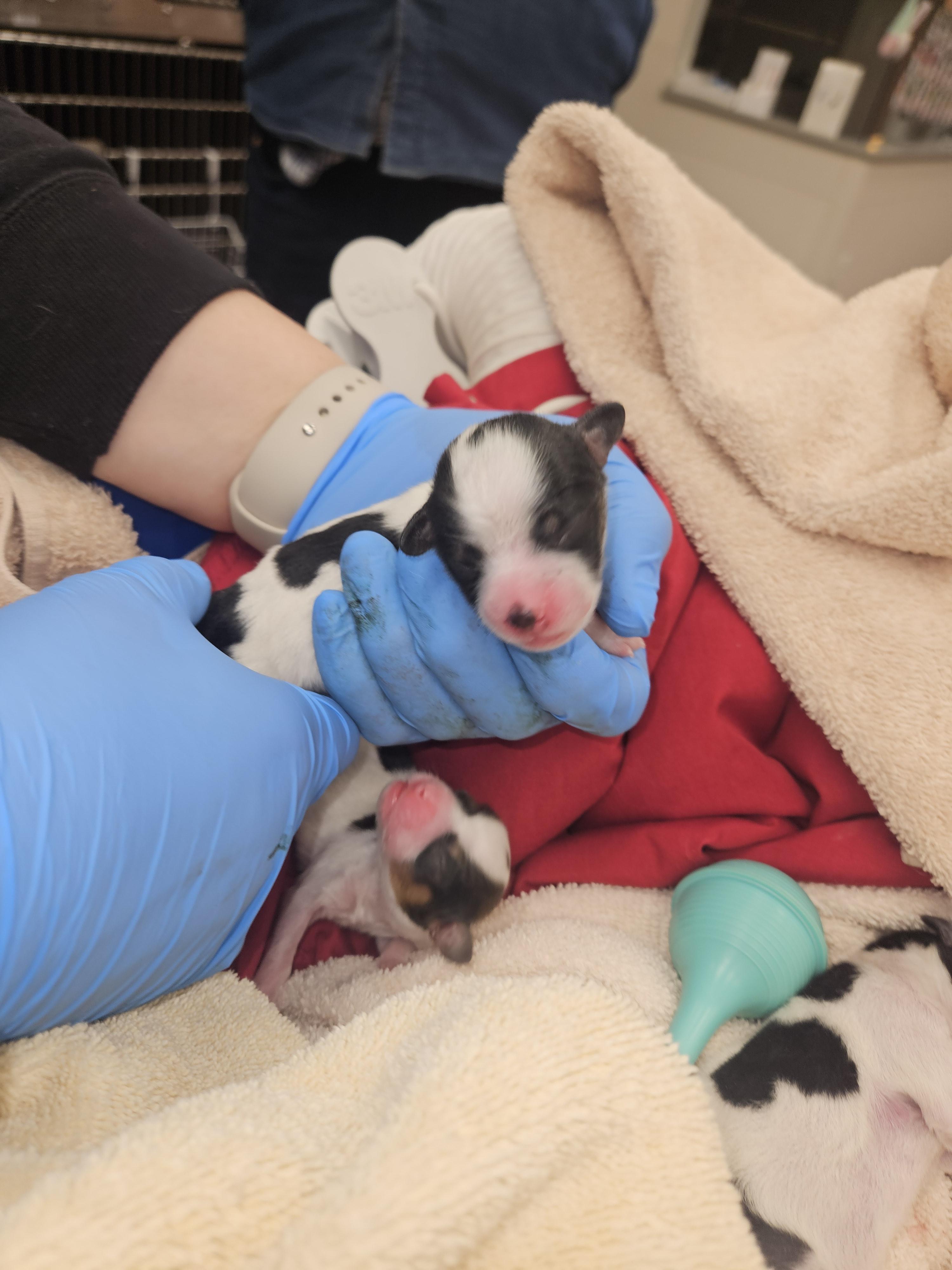 Beautiful tri color AKC registered and a small pup! Sweet Phoebe Bebe Anne is an amazing mom and loves to play with balls.