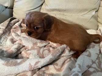 Our Cavalier King Charles Spaniel puppies include blenheim, ruby, tri-color, and black and tan. Cavapoo puppies are red. Colors will vary depending on the parent dogs.