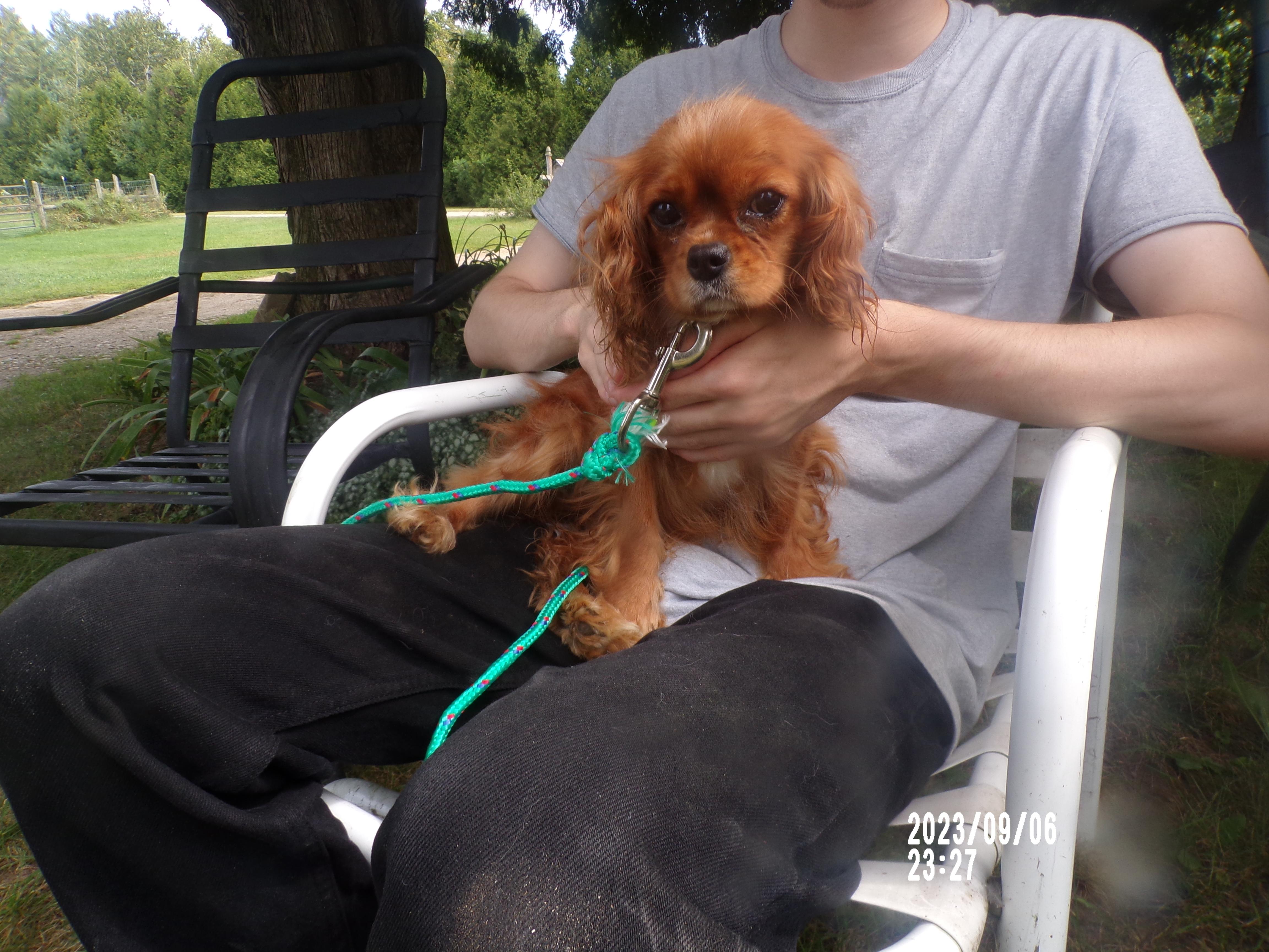 Patricia handed over a perfect, although rambunctious Cavalier puppy. Loki is healthy, growing by leaps and bounds and wears his name well (god of mischief). Many thanks