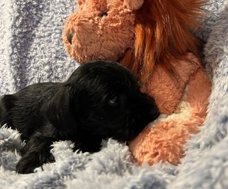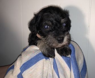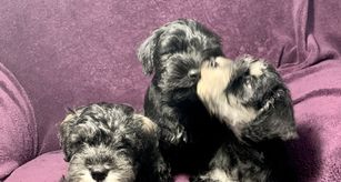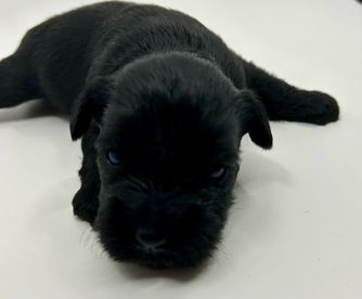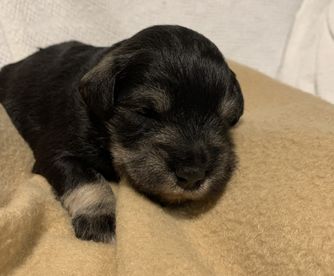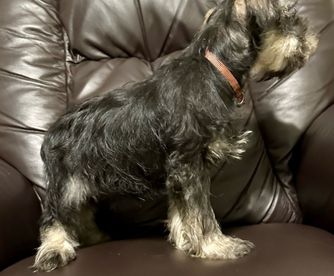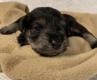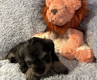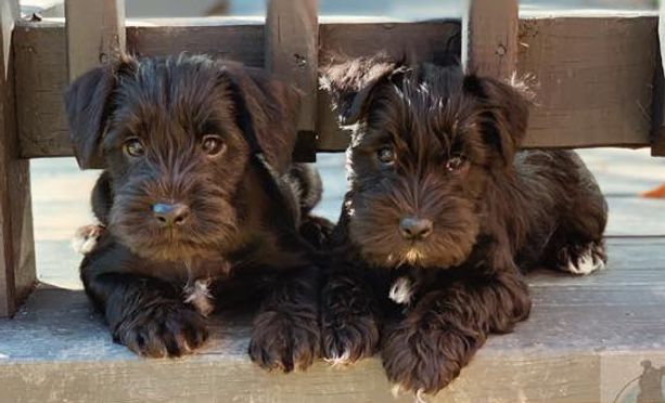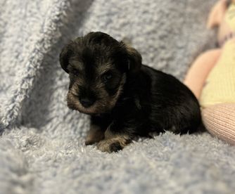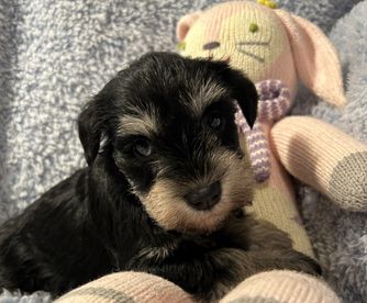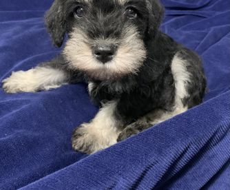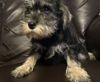 Our puppies include salt and pepper, black and silver, and black. Colors will vary depending on the parent dogs.