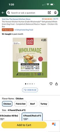 Hey guys! As we get closer to pick up day, several people have asked about which food they need to buy for their babies and so I just wanted to post pictures of the food that they are on. The dry dog food is left out during the day just because they’re so small. I worry about their blood sugar and they need the ability to eat if your blood sugar gets low. The honest kitchen dehydrated food I mix into an oatmeal consistency and they get that twice a day and that is for nutritional value, plus they absolutely love it