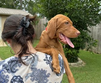 Paul and Gil at Paula's South Bama Vizsla's are amazing. Our Stevie is the most loving smart puppy ever! The continued communication was amazing getting us through the first few weeks. I couldn't recommend more. They provided us with all the information and support we needed to ensure Stevie settled in well and became a happy member of our family. If you are looking for a Vizsla puppy, Paula's South Bama Vizsla's is the place to go. Thank you, Paul and Gil, for all your help and for providing us with such a wonderful addition to our family.