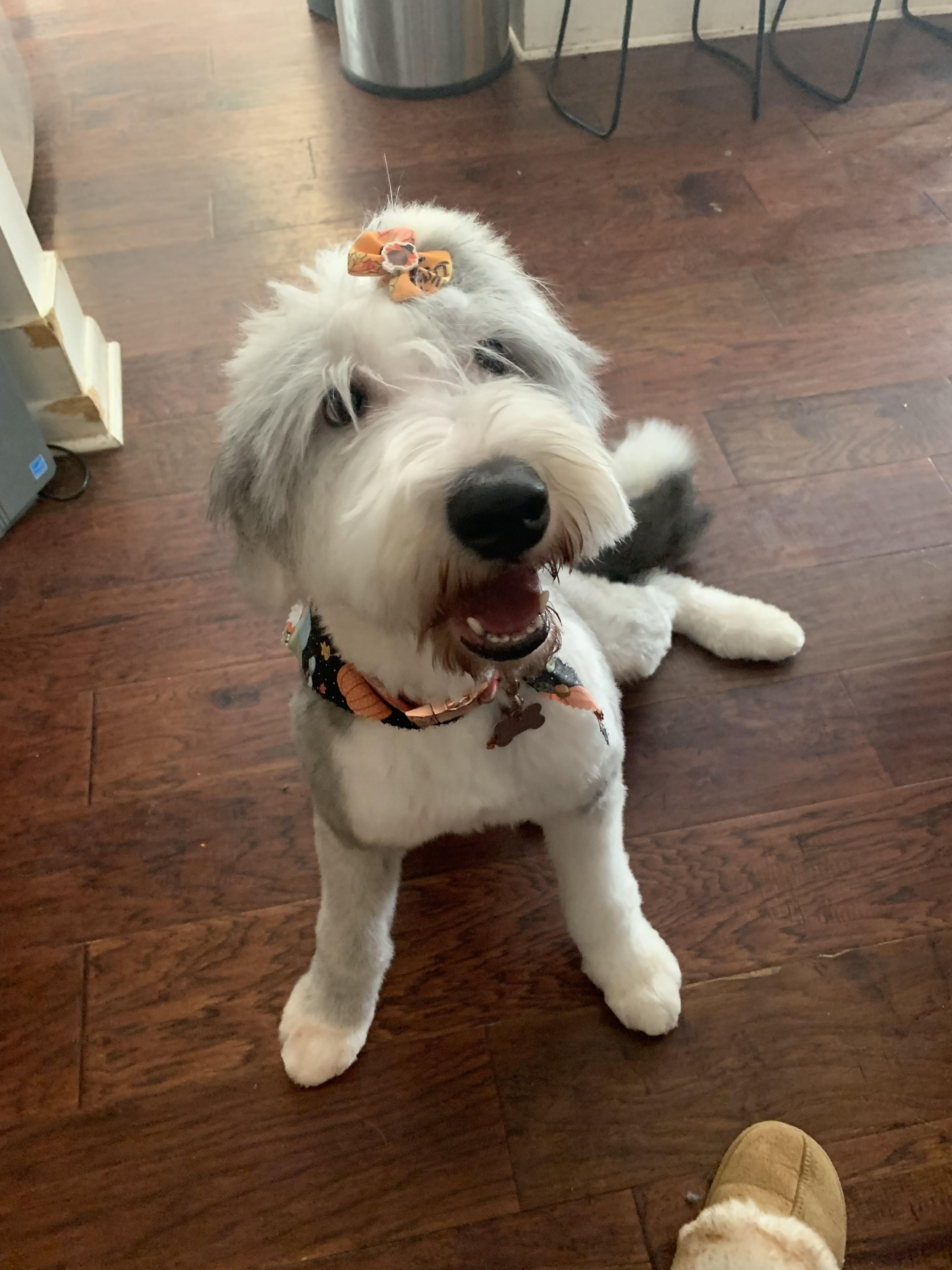 Josie is a female Old English Sheepdog. Carefully selected as a great representative of her breed, Connie decided to make her part of their program. Connie has passed Good Dog’s screening process, which involved a review of their breeding practices, environment, and the mental and physical health of their dogs.