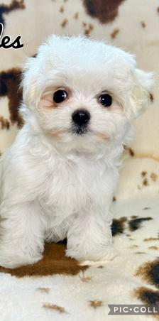 Our Mal-Shi puppies include black gold and white, black and white, white and tan, and white. Poodle puppies include apricot, cream, and white. Maltese puppies include white and white and tan. Maltipoo puppies include apricot, cream, and white. Companion Cross puppies include black and white, brindle, and black. Colors will vary depending on the parent dogs.