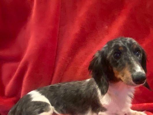 Montana is a CKC registered longhair black and tan dapple piebald mini dachshund. She has a great temperament and is friends with all she meets.