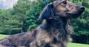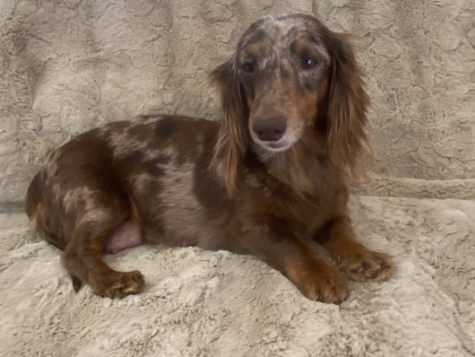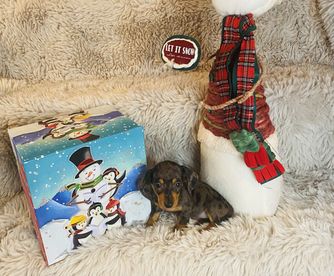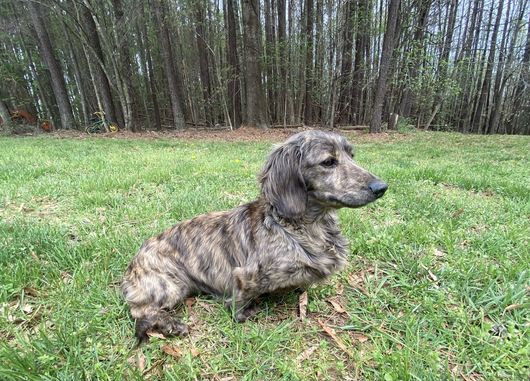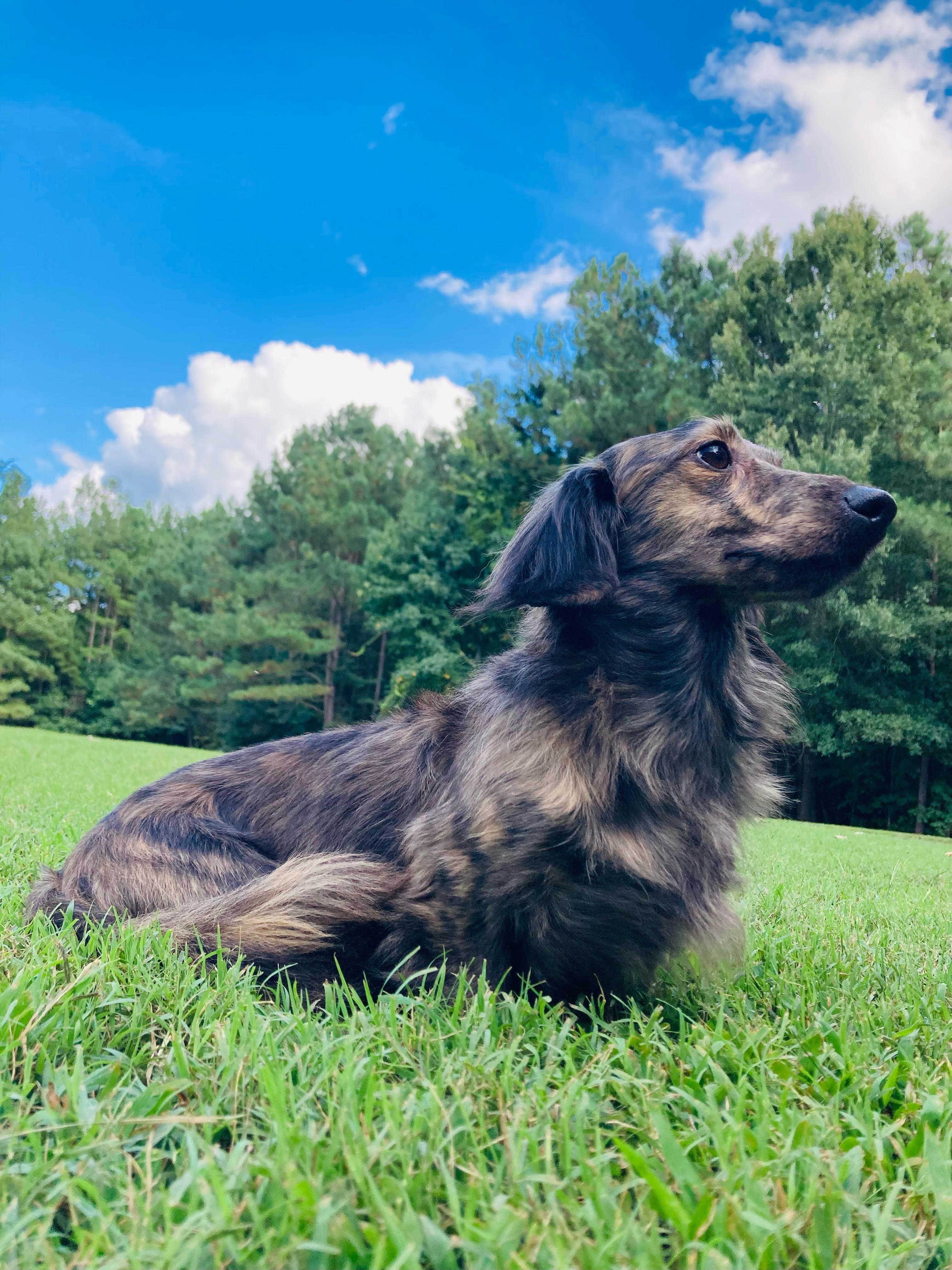 Sasha is an AKC & CKC registered brindle longhair miniature dachshund. She is sweet, laid back and has the best temperament.