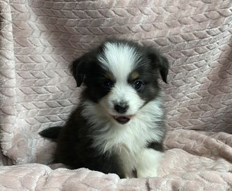 Riley is a miniature Australian Shepherd that weighs about 30 lbs. He has full, thick coat. Riley has a good temperment and is very friendly.