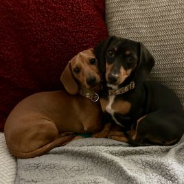 Our pups are 6 months old now, and I can’t say enough good things about Sara and Paw Prints. She was always available to answer questions, and sent us pictures before we picked up Seamus and Maddie. After we got them, she stayed in touch and continued to support us during those first few months. They even had “sleep away camp” with her while we went on vacation. I would recommend her to anyone looking for a mini doxie! Thanks Sara!