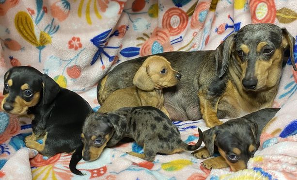 Dachshund puppies include smooth and longhaired coat varieties. Coat types may vary depending on the parent dogs.