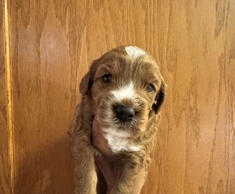 Our puppies include red, gold, apricot, chalk, and chocolate. Colors will vary depending on the parent dogs.