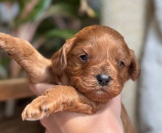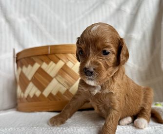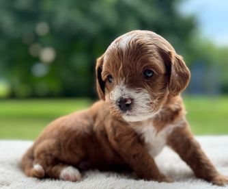 Our puppies include blenheim, apricot, and red. Colors will vary depending on the parent dogs.