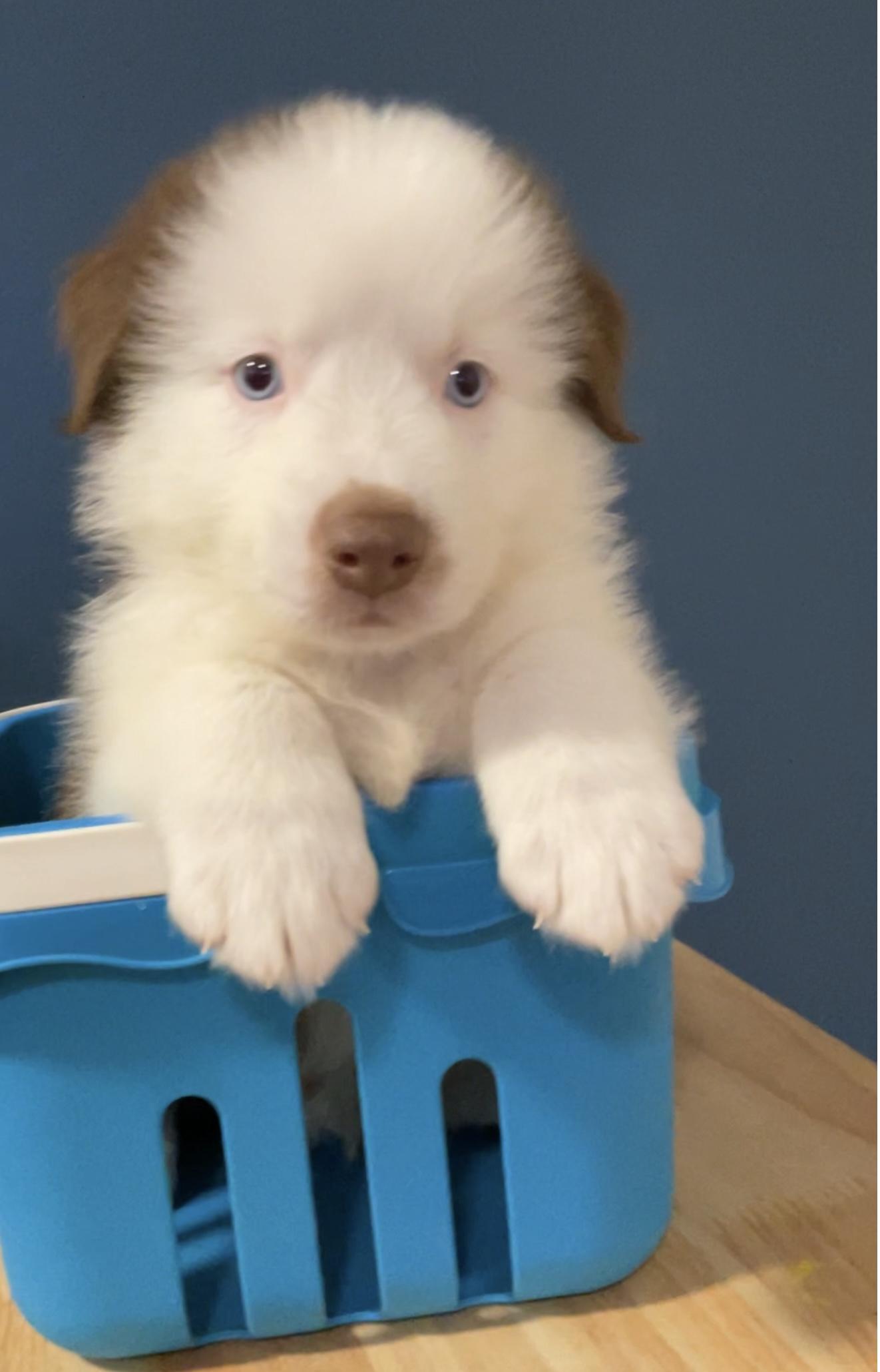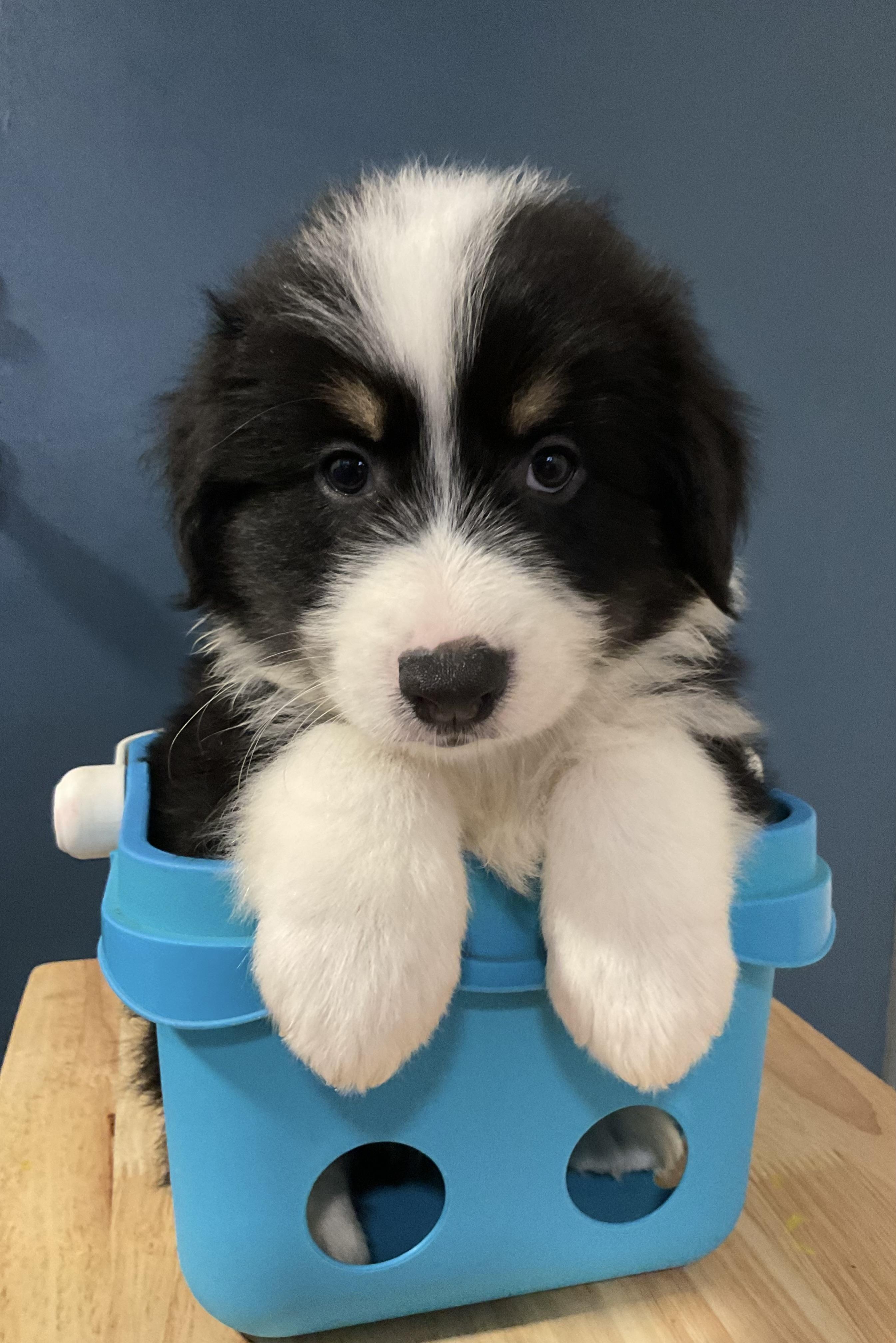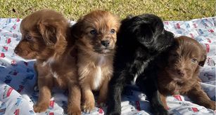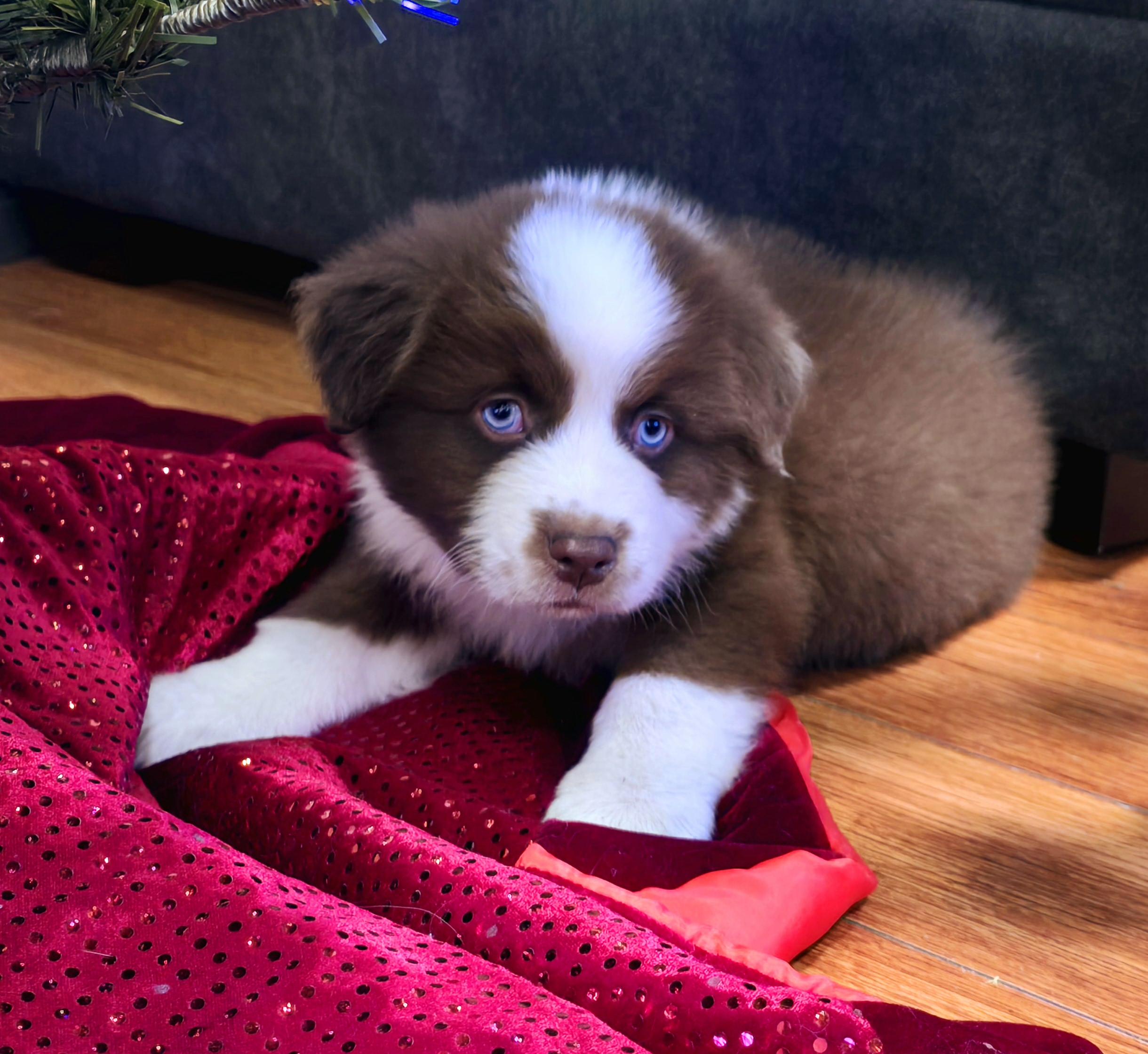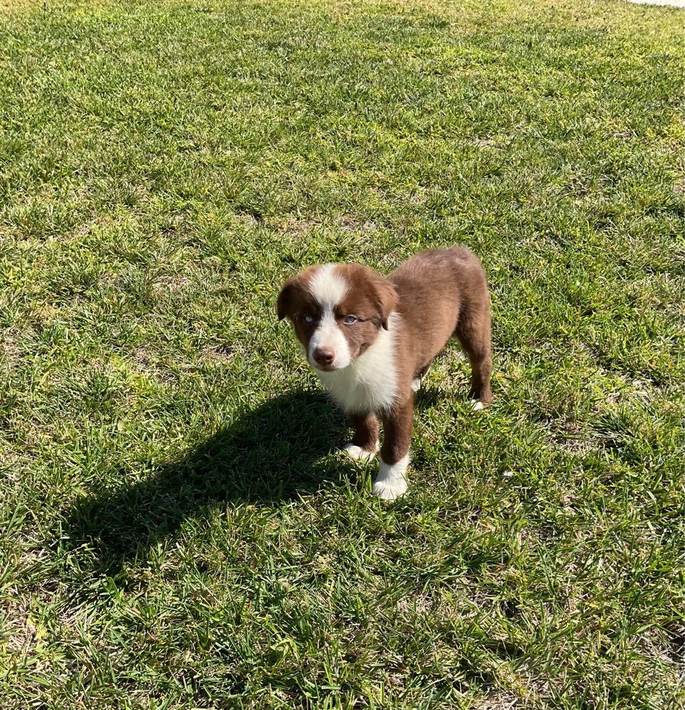 Our Aussiedoodle puppies include brown and white, black and white, and red tri-color. Australian Shepherd puppies include red & white, black & white, black, red merle, blue merle, red, black tri-color, and red tri-color. Colors will vary depending on the parent dogs.