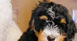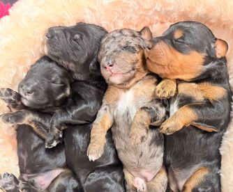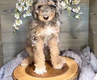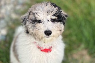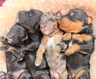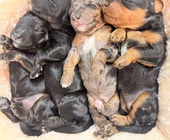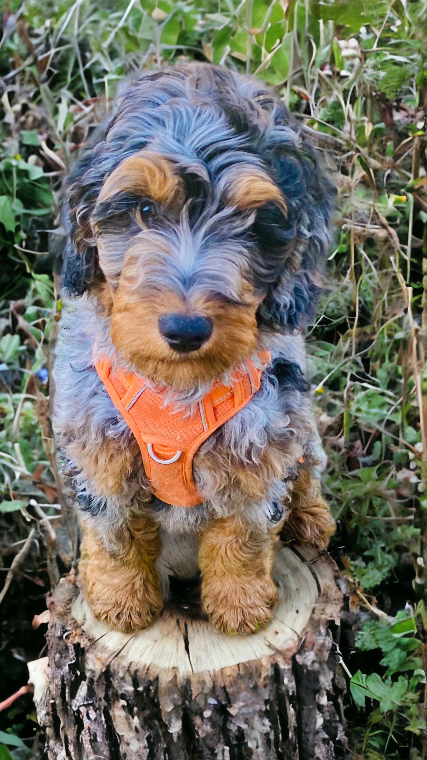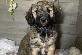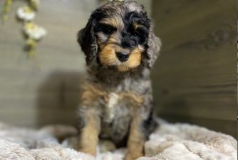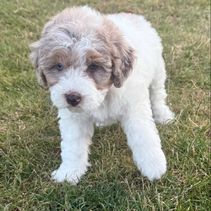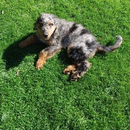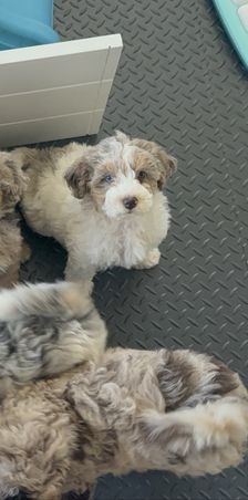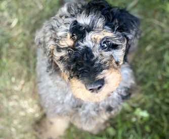 Polly is an amazing, caring, and patient breeder! We were able to get a beautiful phantom merle golden doodle (Crackle) and now at 4.5 months he’s fitting into our lives perfectly! Crackle came potty trained, he’s very intelligent, great temperament, and has been great with other dogs, kids, and the around the house. Polly gave us an amazing goodie bag, and consistently would check in during the first week. We highly recommend her!