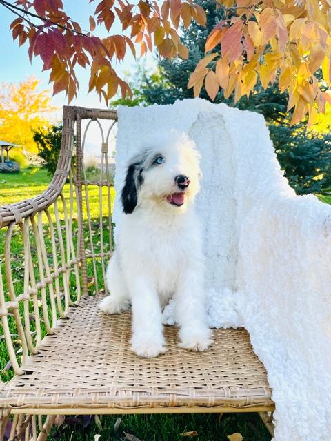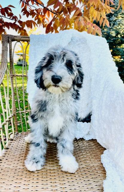 Sky is a female Sheepadoodle. Carefully selected as a great representative of her breed, Jeremy decided to make her part of their program. Jeremy has passed Good Dog’s screening process, which involved a review of their breeding practices, environment, and the mental and physical health of their dogs.