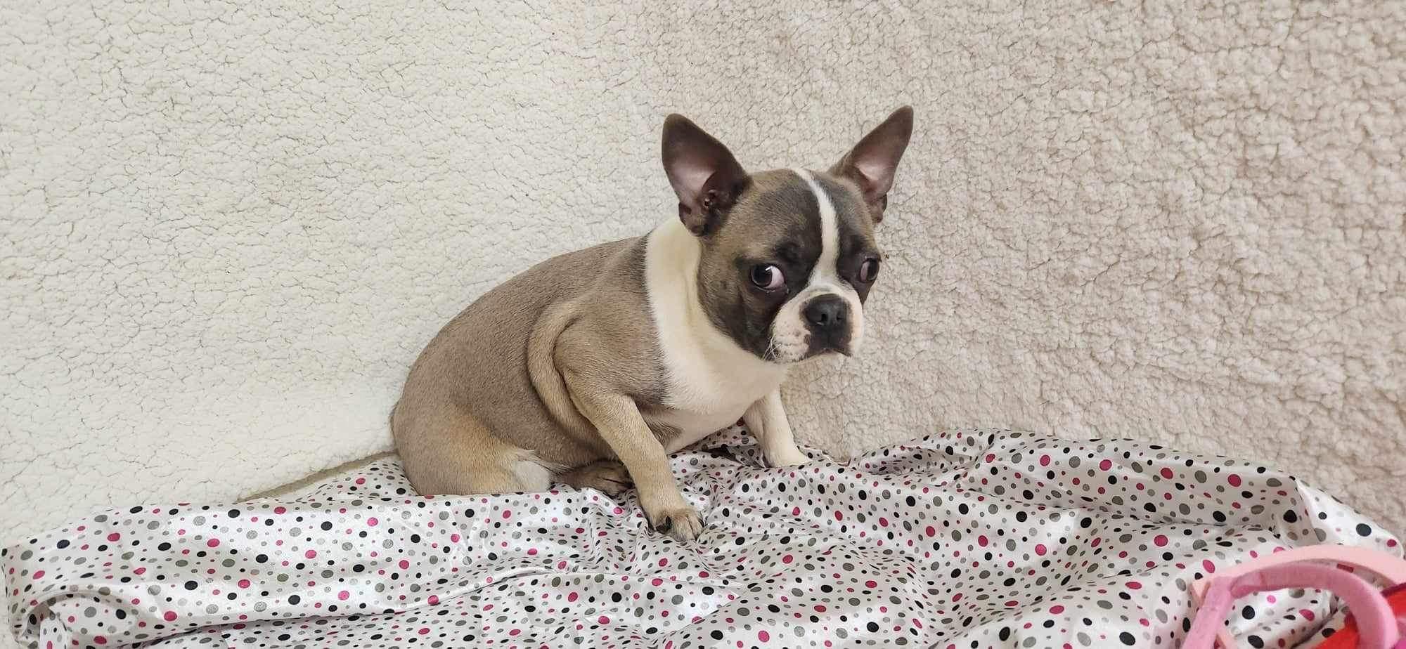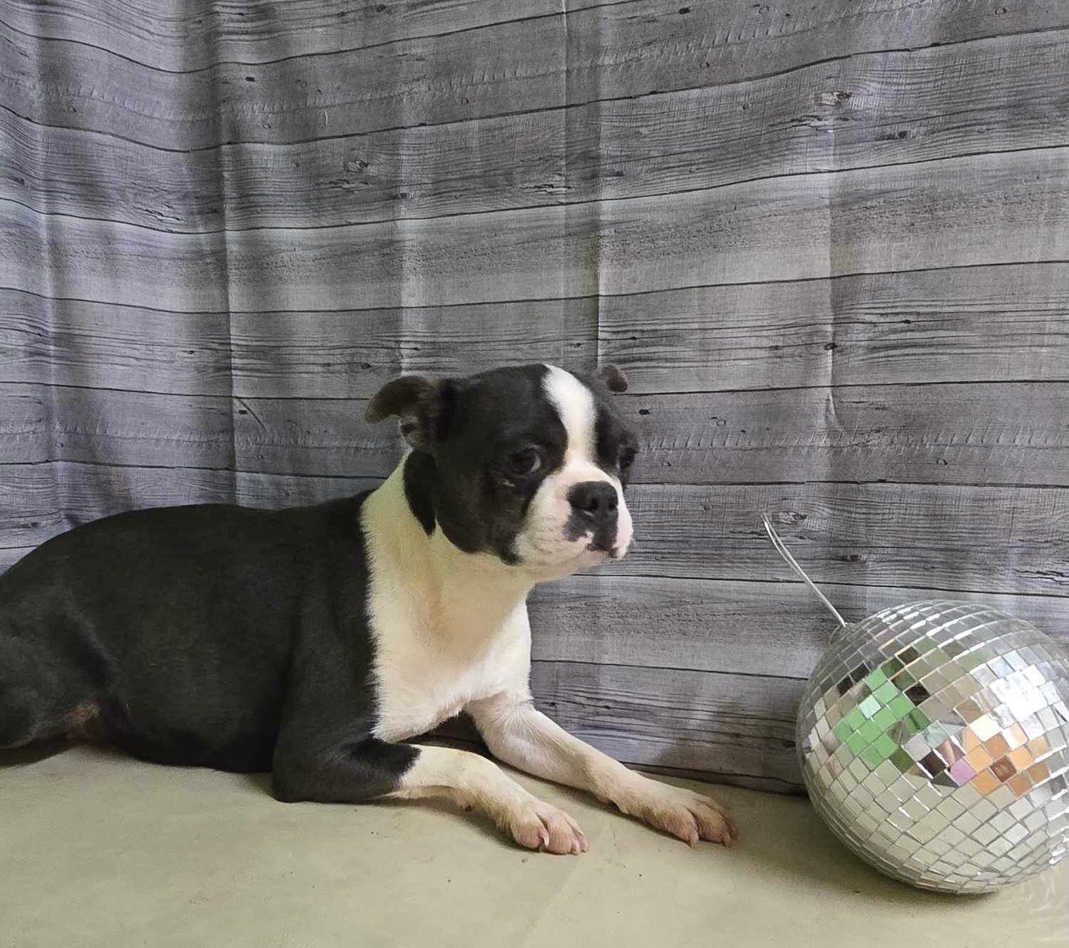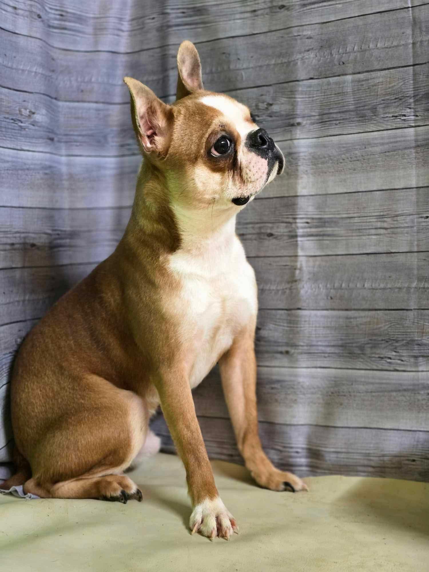 Motley is a male Boston Terrier. Carefully selected as a great representative of his breed, Kimberly decided to make him part of their program. Kimberly has passed Good Dog’s screening process, which involved a review of their breeding practices, environment, and the mental and physical health of their dogs.