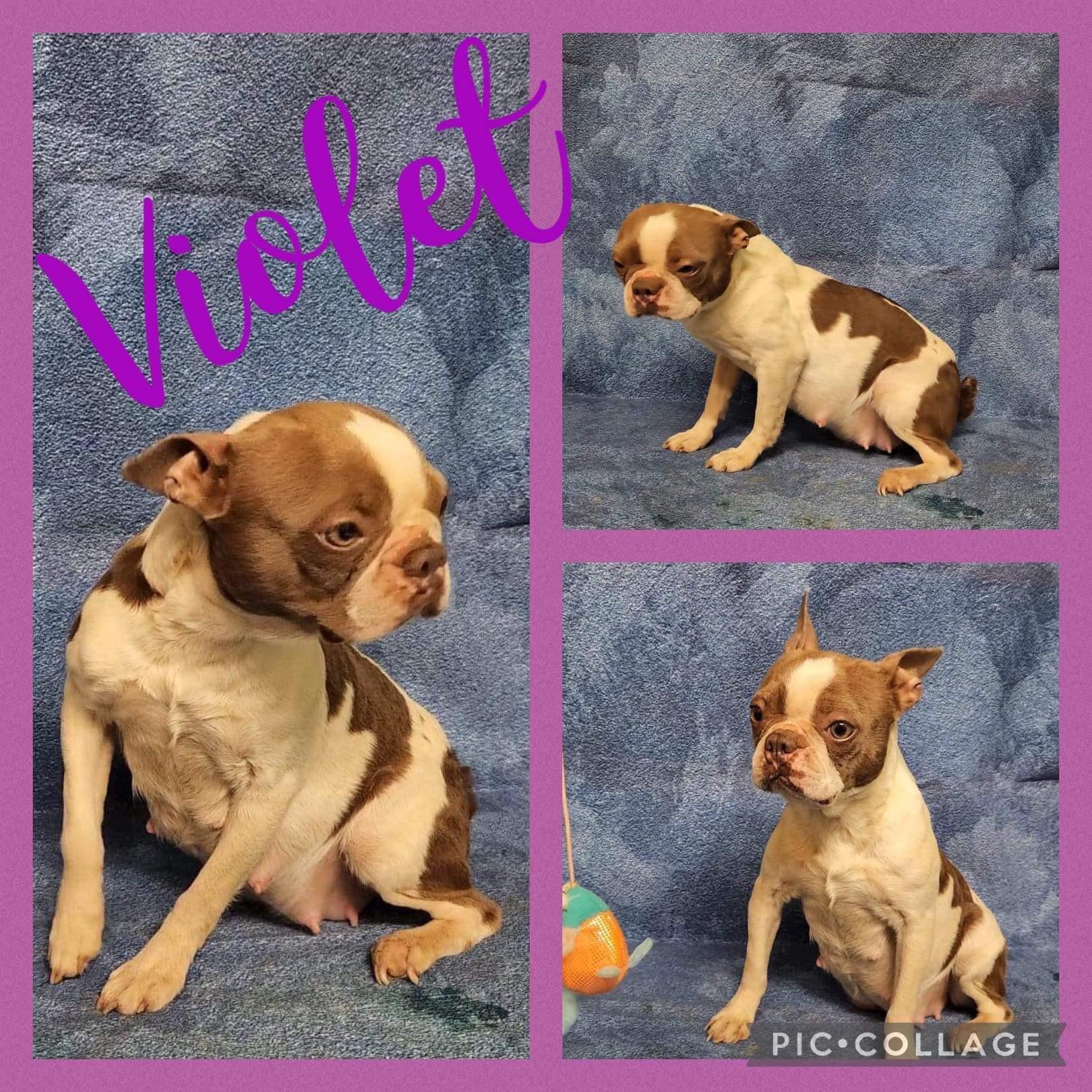 Violet is a female Boston Terrier. Carefully selected as a great representative of her breed, Kimberly decided to make her part of their program. Kimberly has passed Good Dog’s screening process, which involved a review of their breeding practices, environment, and the mental and physical health of their dogs.