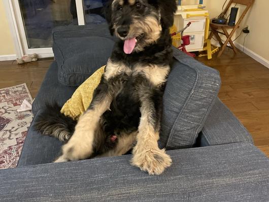 Bear is a good boy. He loves a good tummy rub and is a playful sweetheart. He’s the best dog and loves to play with his puppies. He understands to be gentle with them, and small children. He loves to play fetch and snuggle.