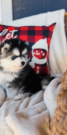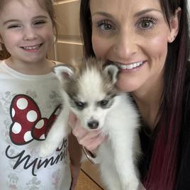We absolutely love Loki (formerly known as Wishbone). Kassandra was so responsive and knowledgeable about the breed. She so kindly took the time to answer all of our questions. We could tell she really loves by her dogs. Kassandra made our job a lot easier having Loki already pee pad potty trained. She even stayed in touch with us after we brought him home! I recommended Kassandra to anyone who asks about getting a pomsky.