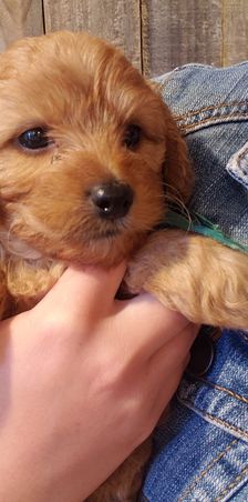 Penny is a F1 Cavapoo.. She is calm and cuddly, she loves to play fetch and to play in the hose.