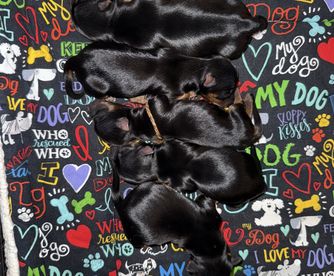 Our puppies are silver black and tan. Colors will vary depending on the parent dogs.