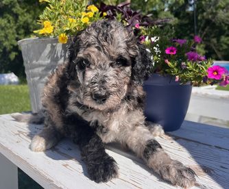 I'm Mindy A., the breeder behind Pawsitively Doodles located in Taylor, MO. We love to responsibly raise and train our puppies so they have the tools to be well-rounded, beloved family members. The loyalty and loving disposition of this breed are simply the best! We put a great deal of effort into raising our litters to ensure our puppy families will have the best experience raising their new family members.